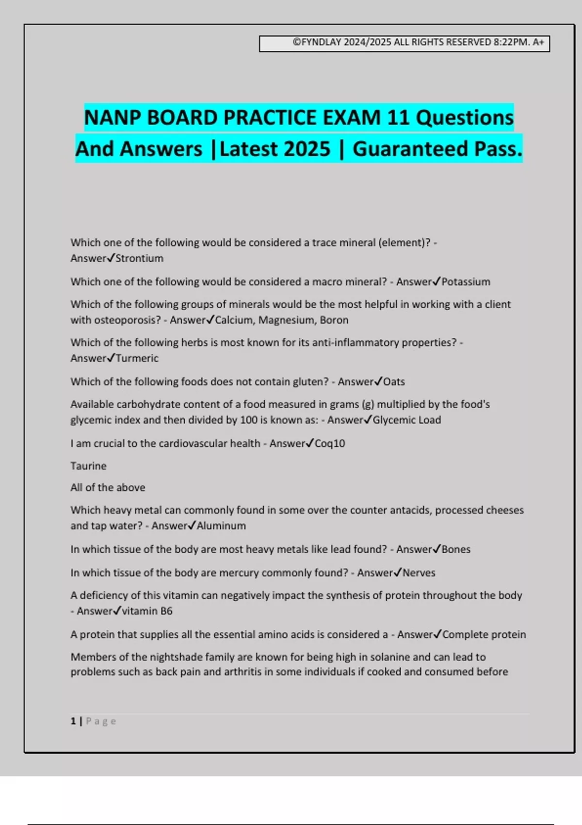 NANP BOARD PRACTICE EXAM 11 Questions