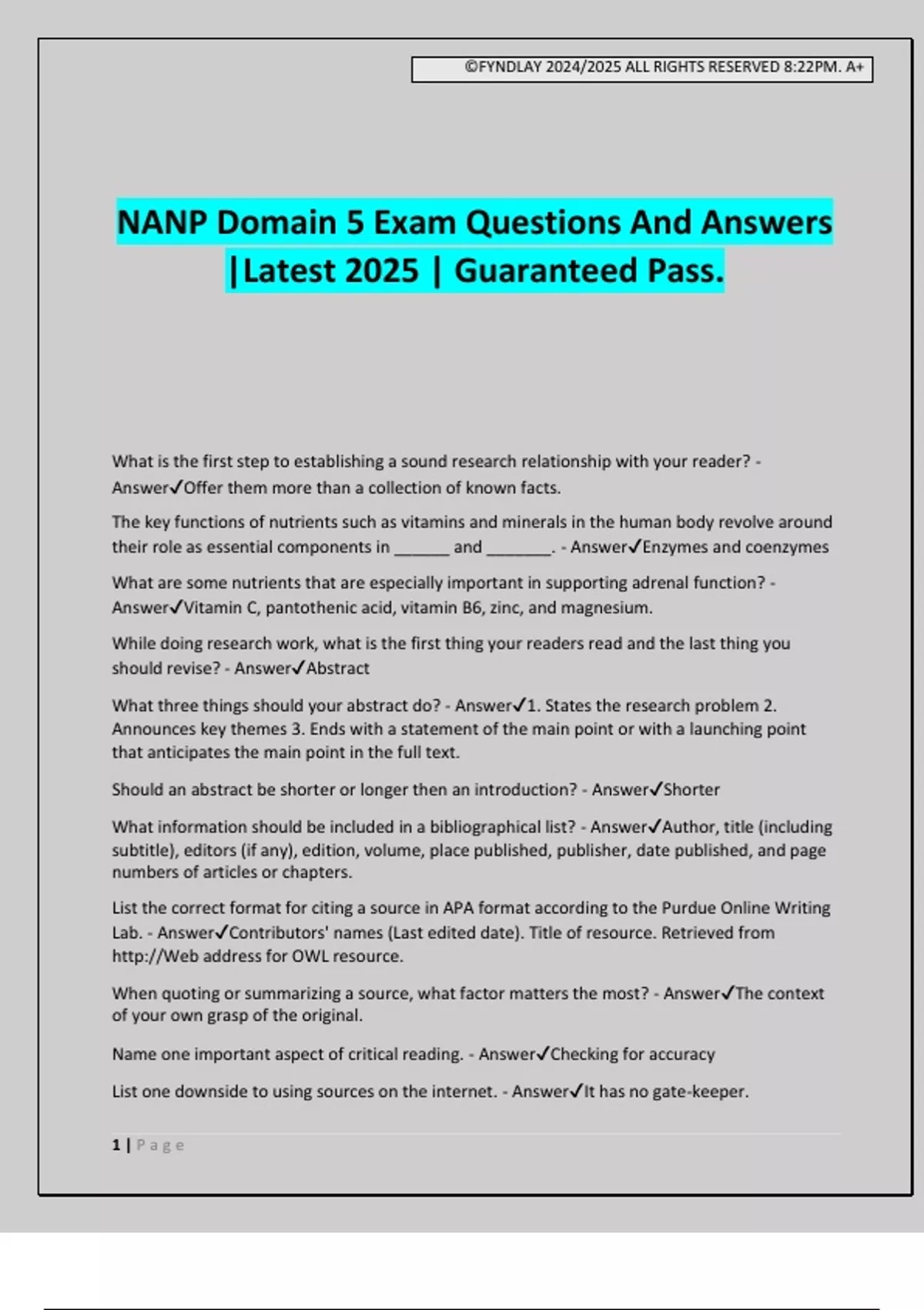 NANP Domain 5 Exam Questions And Answers