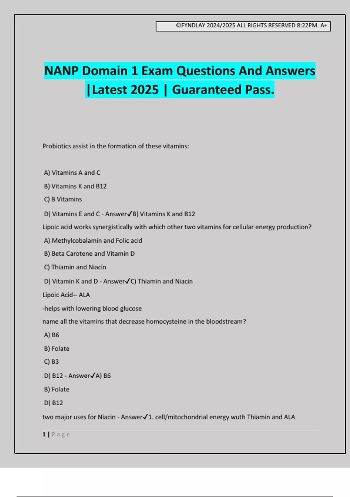 D) Vitamin K and D - Answer✔C) Thiamin and Niacin