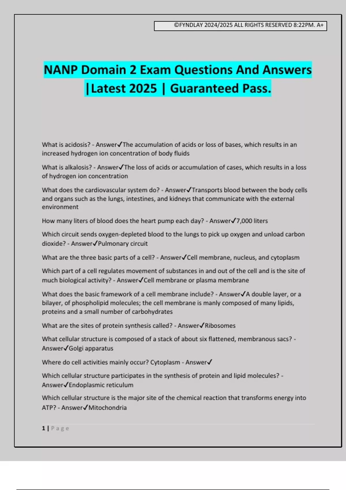 What are the three basic parts of a cell? - Answer✔Cell membrane, nucleus, and cytoplasm