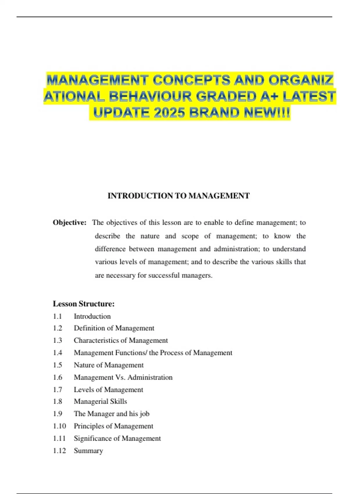 MANAGEMENT CONCEPTS AND ORGANIZATIONAL BEHAVIOUR GRADED A+ LATEST UPDATE 2025 BRAND NEW!!!
