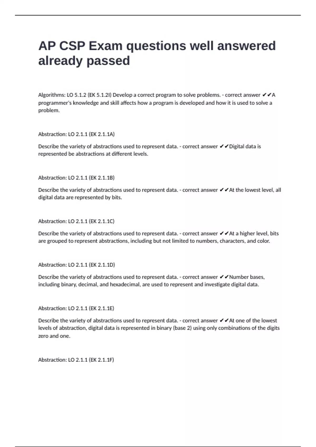 Identify multiple levels of abstractions that are used when writing programs. - correct answer ✔✔High-
