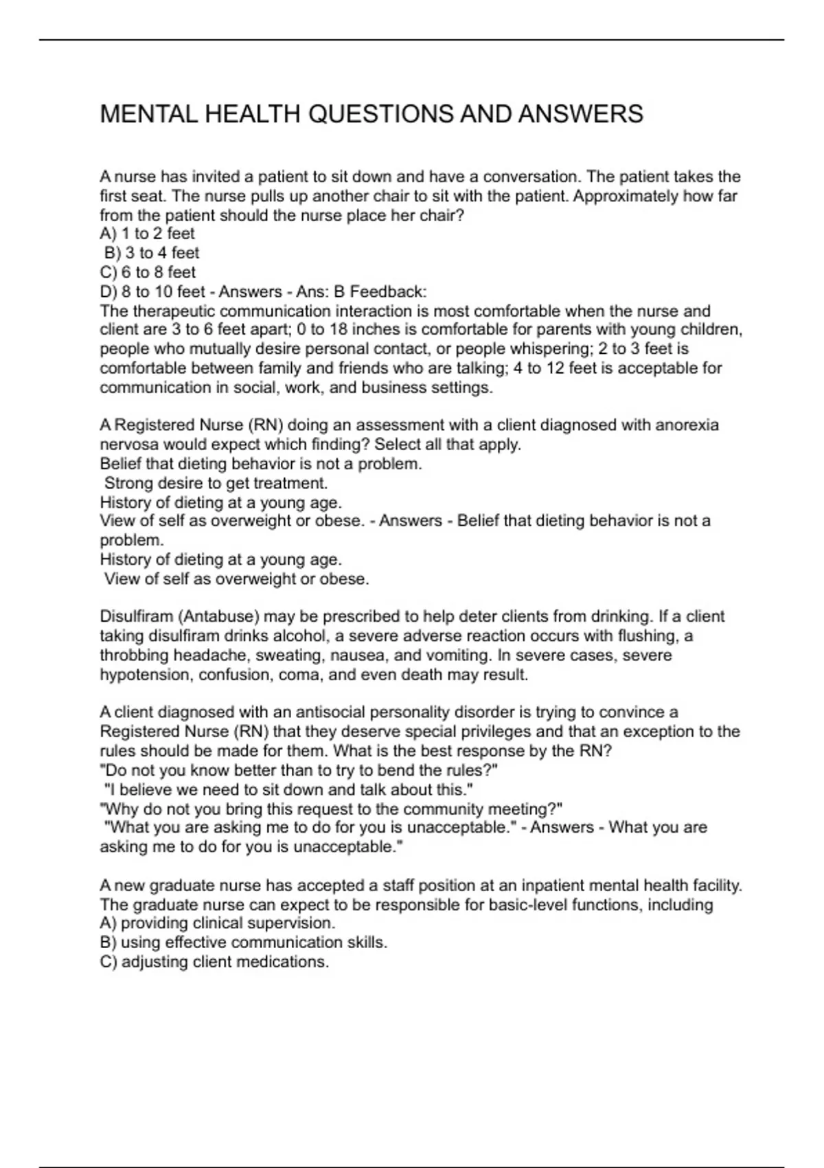 MENTAL HEALTH QUESTIONS AND ANSWERS