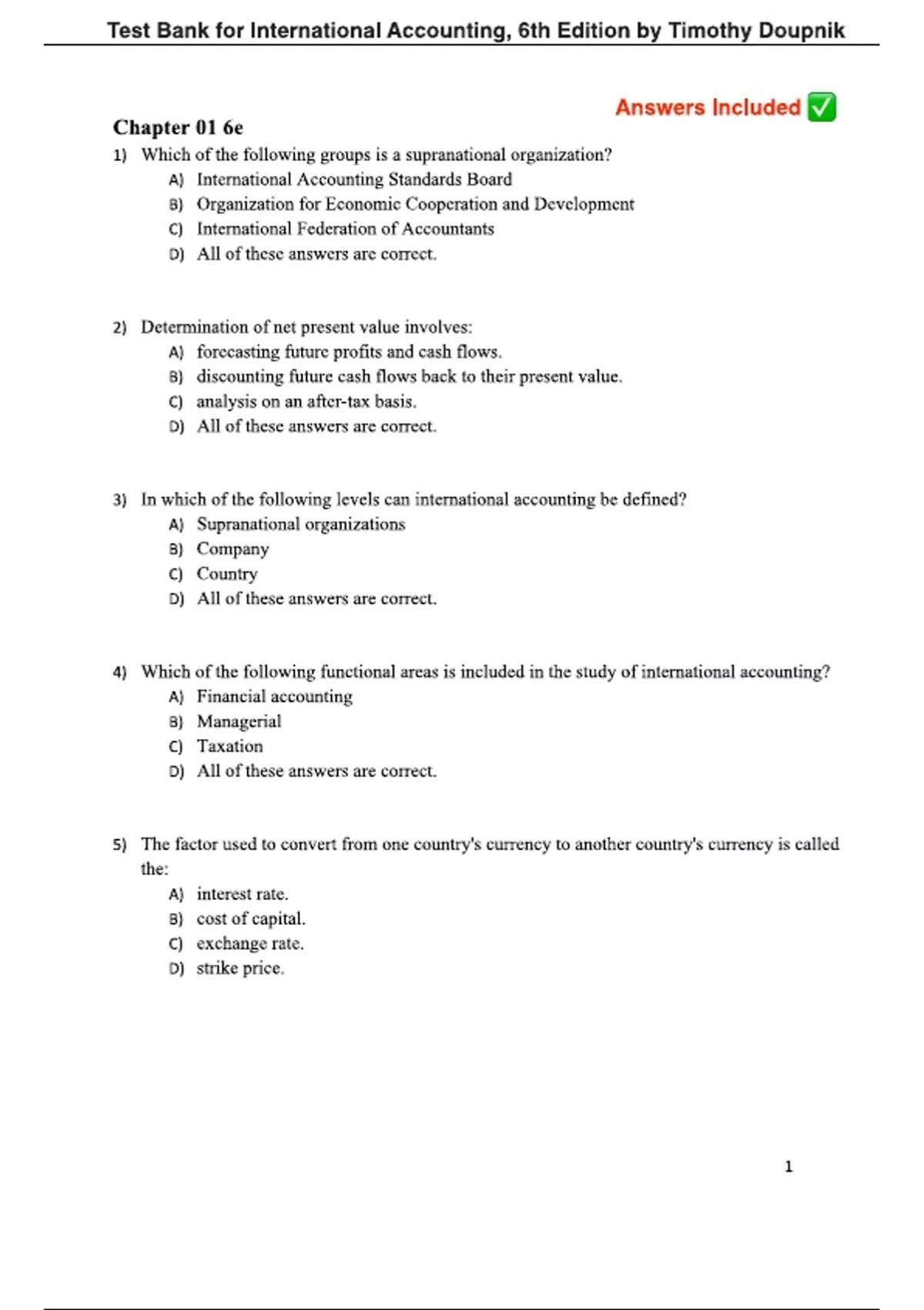 Test Bank for International Accounting, 6th Edition by Timothy Doupnik.