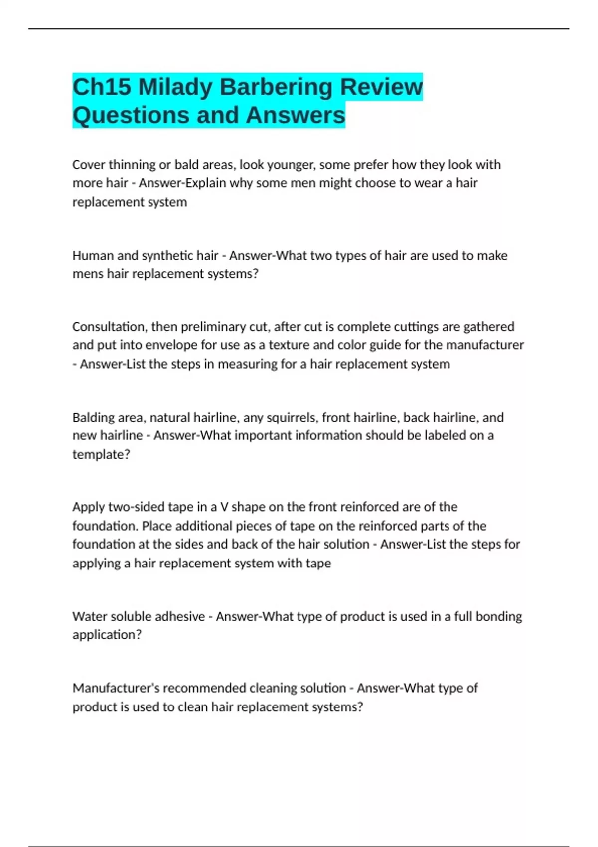 Ch15 Milady Barbering Review Questions and Answers