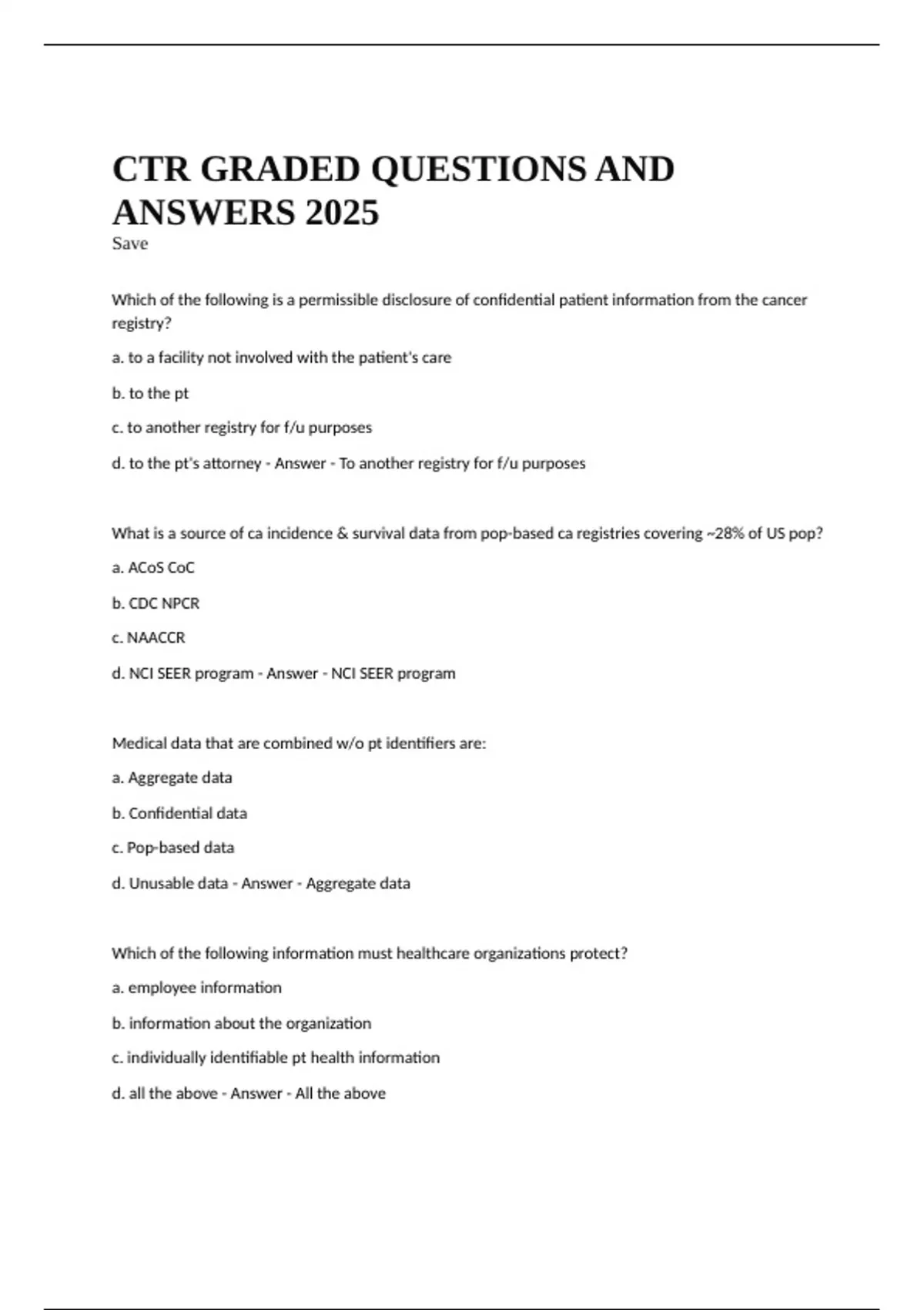 CTR GRADED QUESTIONS AND ANSWERS 2025 Save