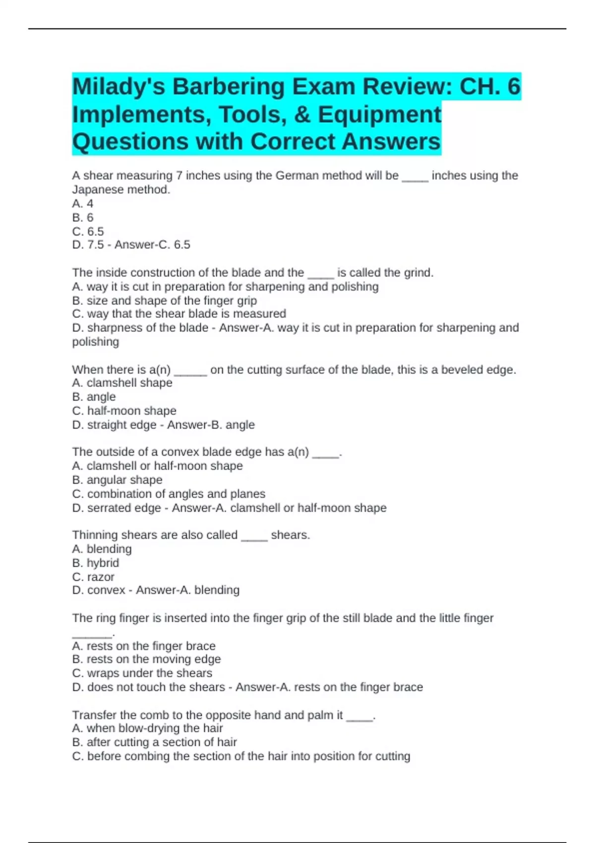 D. sharpness of the blade - Answer-A. way it is cut in preparation for sharpening and