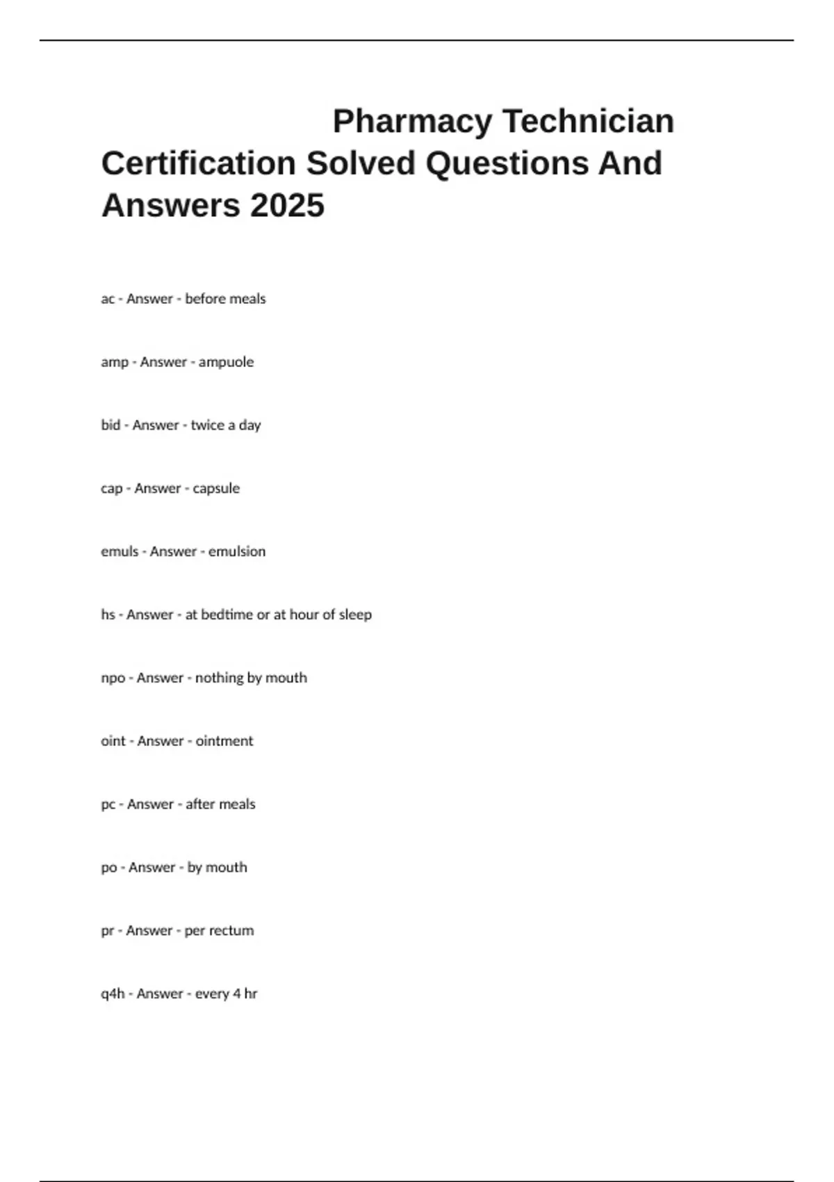 Pharmacy Technician Certification Solved Questions And Answers 2025