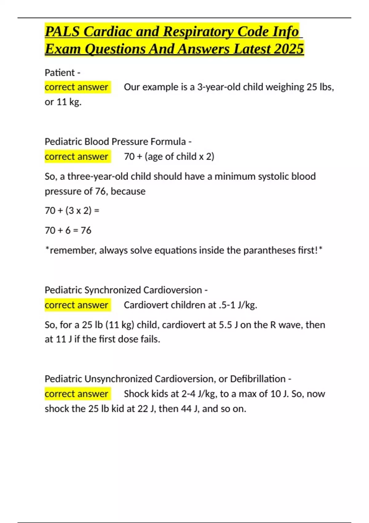 correct answer ✅Cardiovert children at .5-1 J/kg.