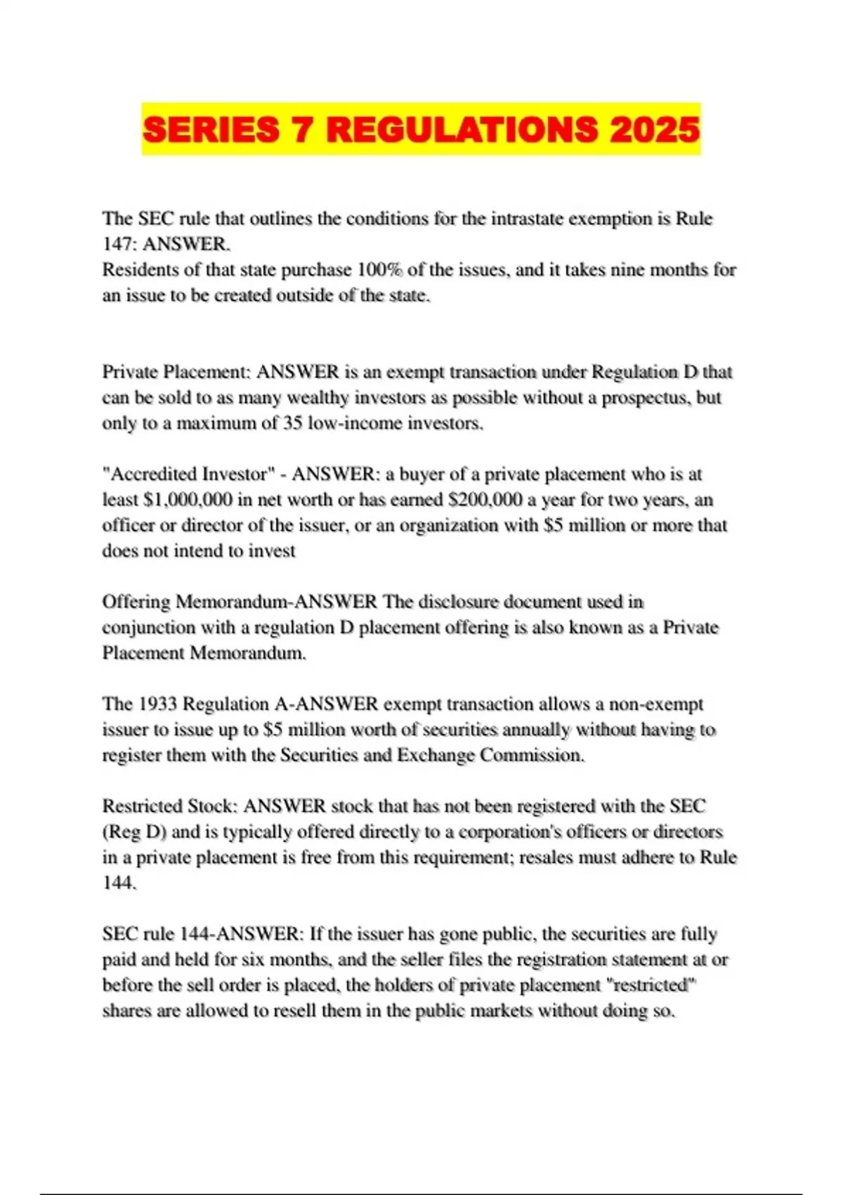 Restricted Stock: ANSWER stock that has not been registered with the SEC