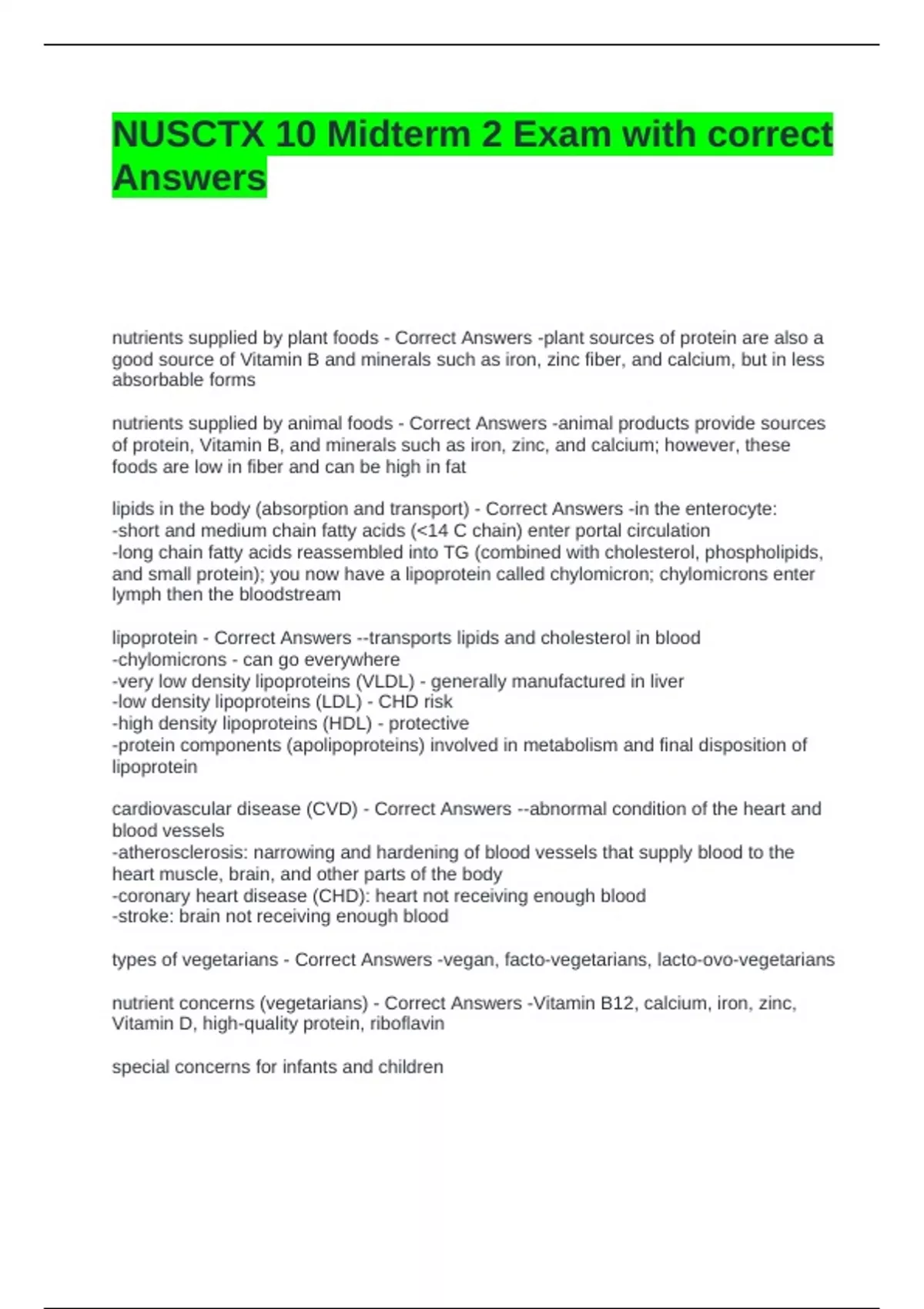 lipoprotein - Correct Answers --transports lipids and cholesterol in blood
