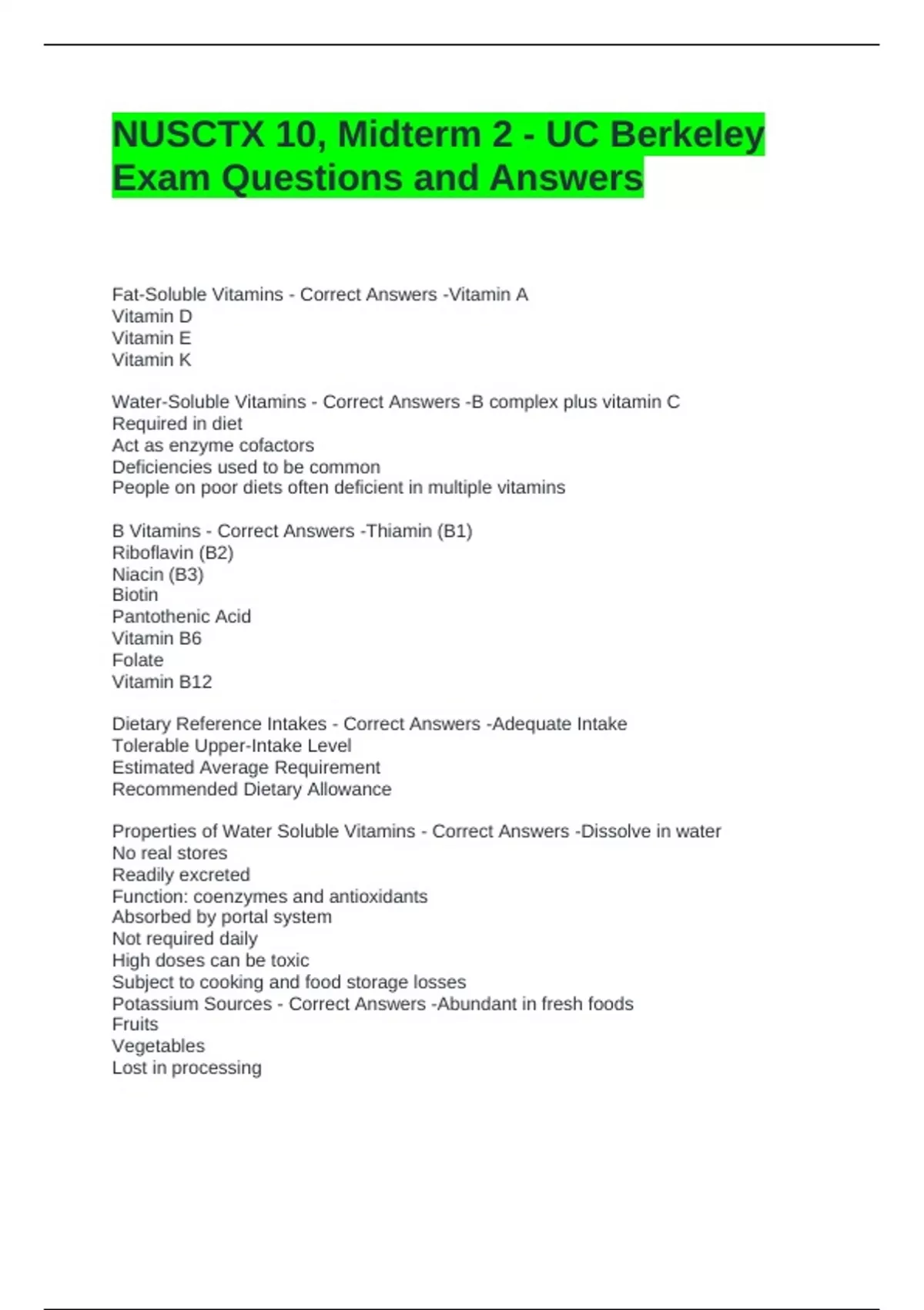 B Vitamins - Correct Answers -Thiamin (B1)