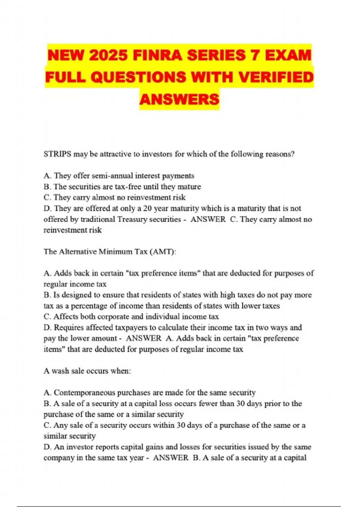 ALL SERIES 7 PACKAGED EXAMS: QUESTIONS WITH 100% VERIFIED ANSWERS LATEST UPDATED