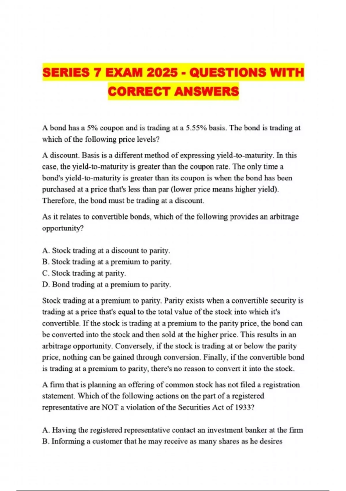 series 7 exam 2025 questions with correct answer