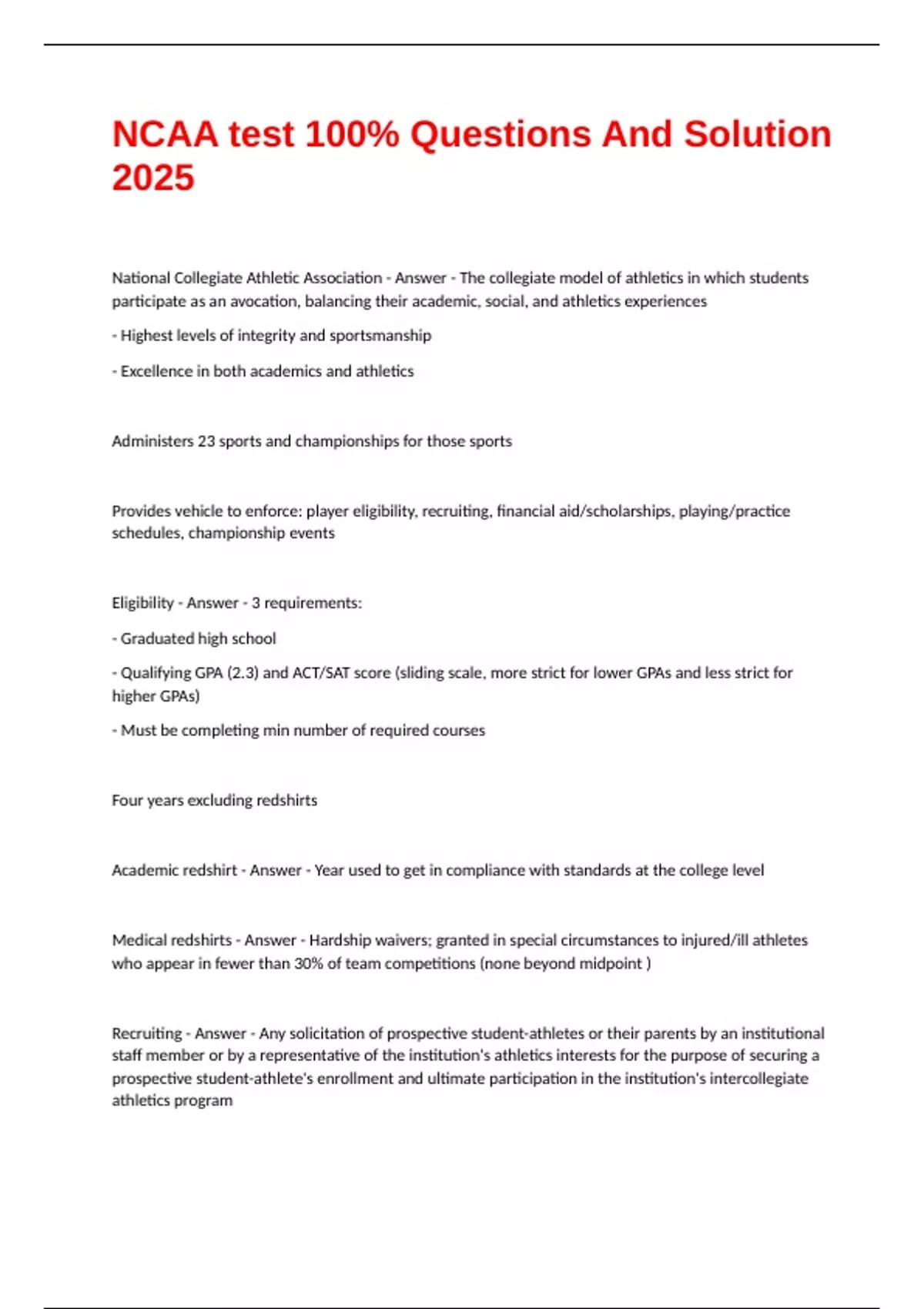 NCAA test 100% Questions And Solution 2025