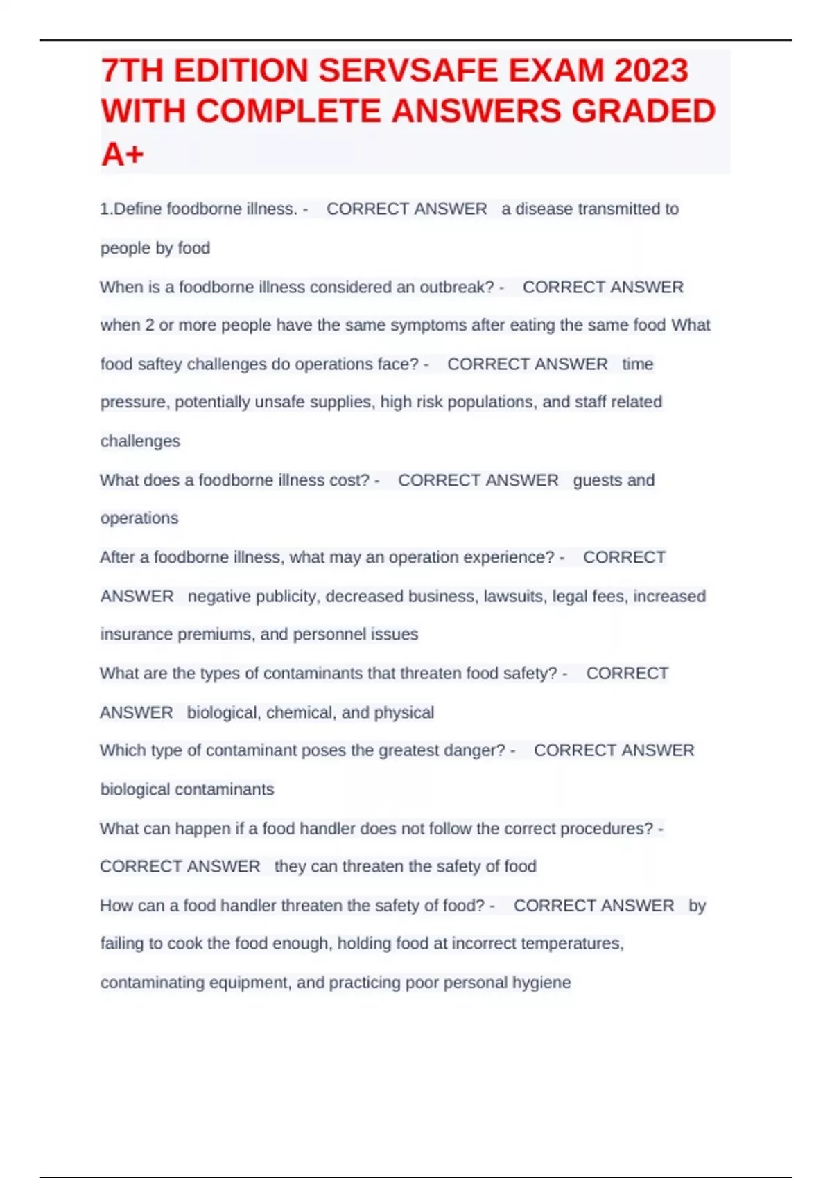 7TH EDITION SERVSAFE EXAM 2023 WITH COMPLETE ANSWERS GRADED A+ . APROVED.