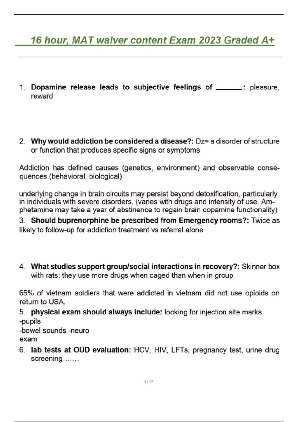 16 hour, MAT waiver content Exam 2025 Graded A+. APPROVED