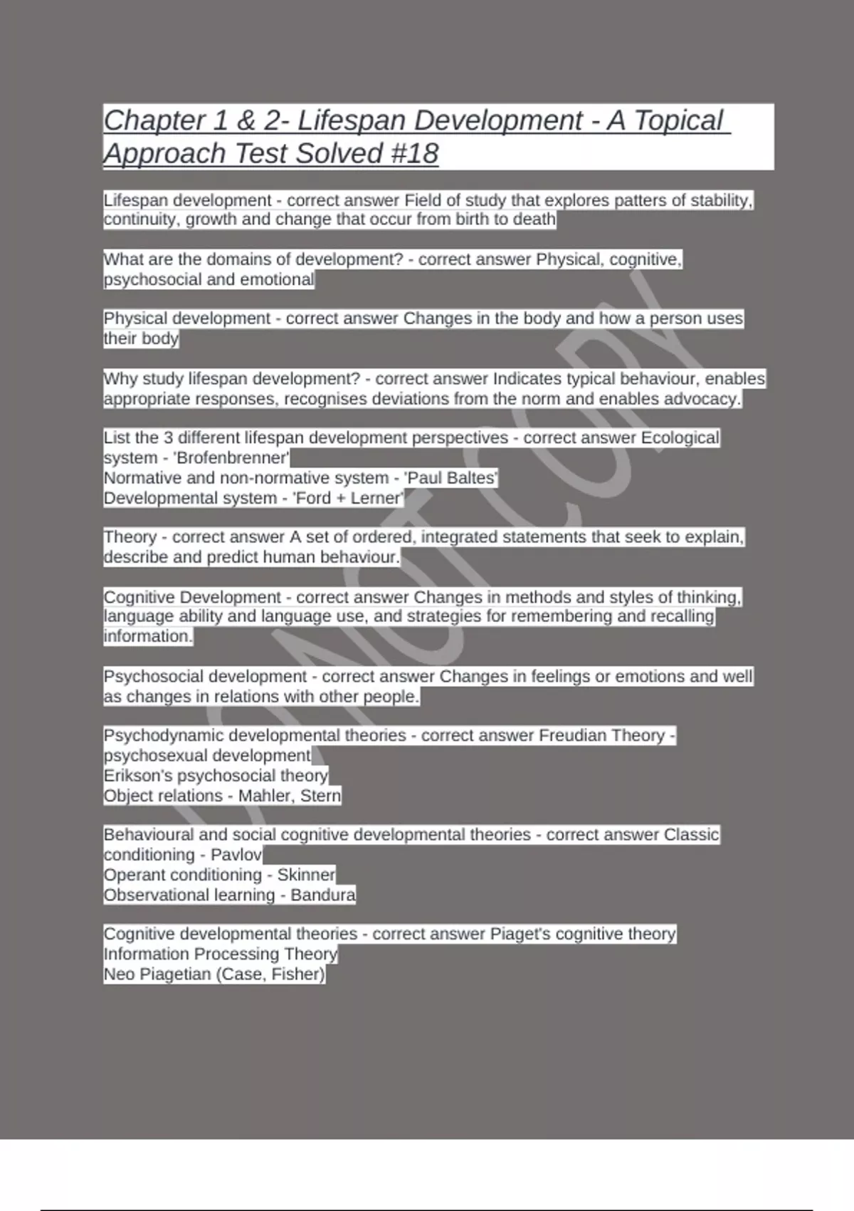 Why study lifespan development? - correct answer Indicates typical behaviour, enables