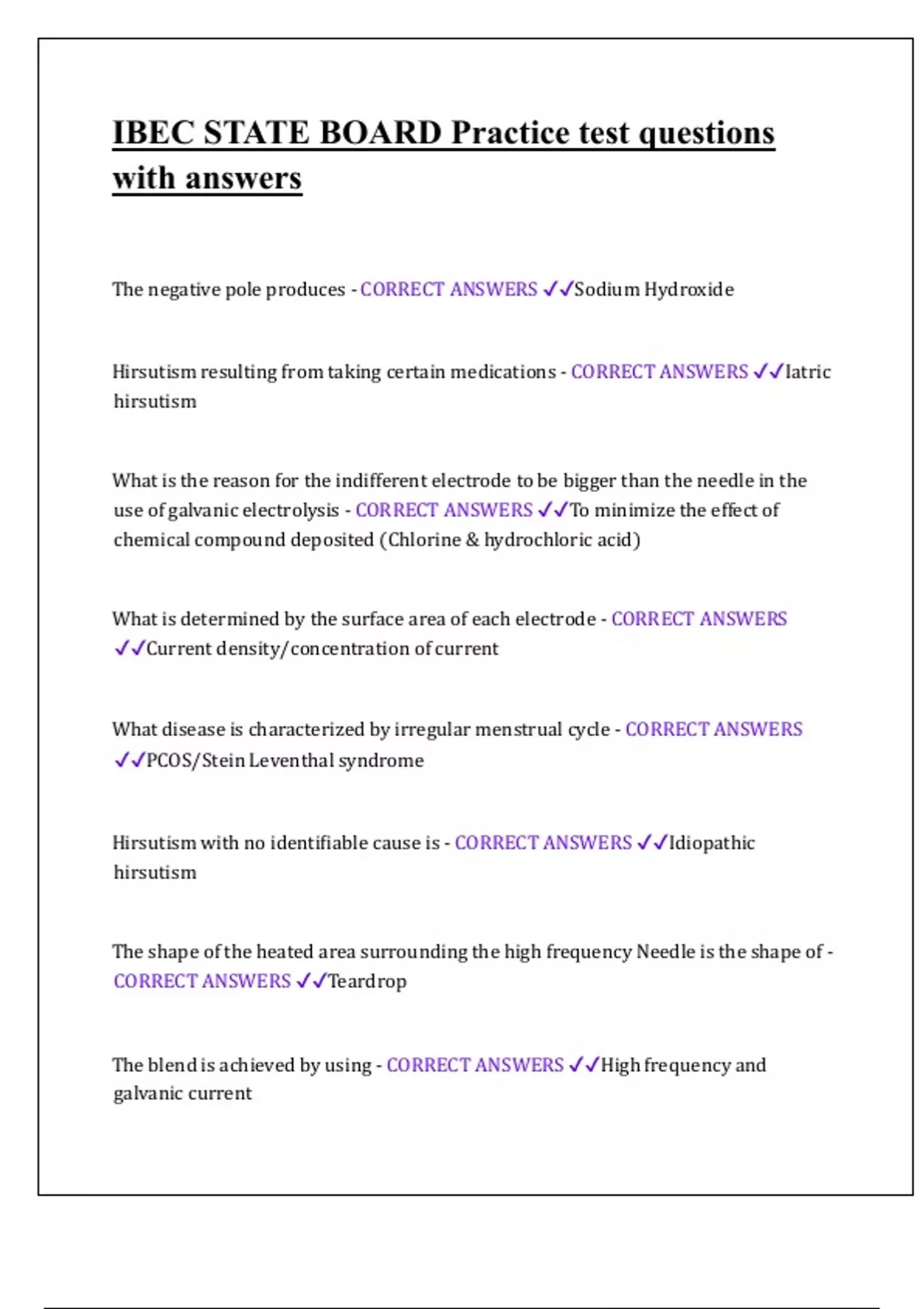 IBEC STATE BOARD Practice test questions with answers