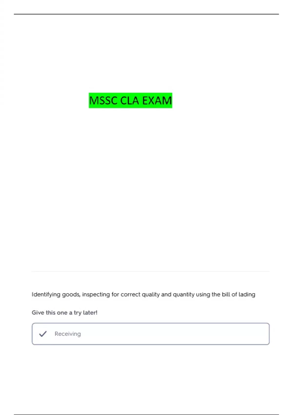 MSSC CLA PRACTICE QUESTIONS WITH COMPLETE ANSWERS
