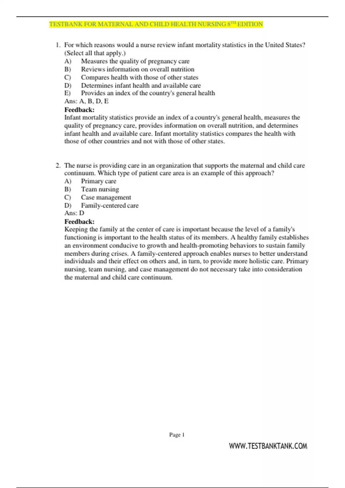 1. For which reasons would a nurse review infant mortality statistics in the United States?