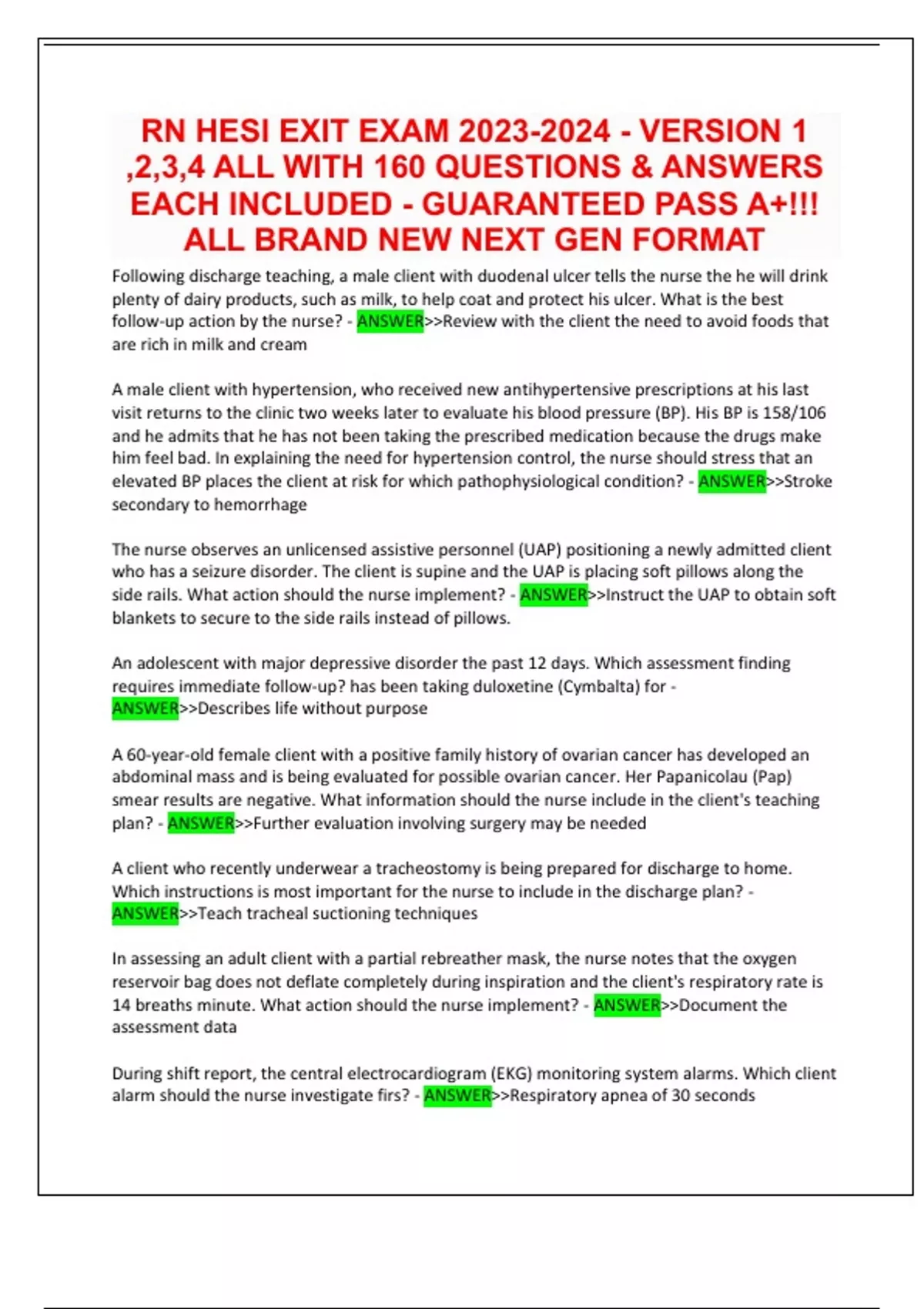 RN HESI EXIT EXAM 2023-2024 - VERSION 1