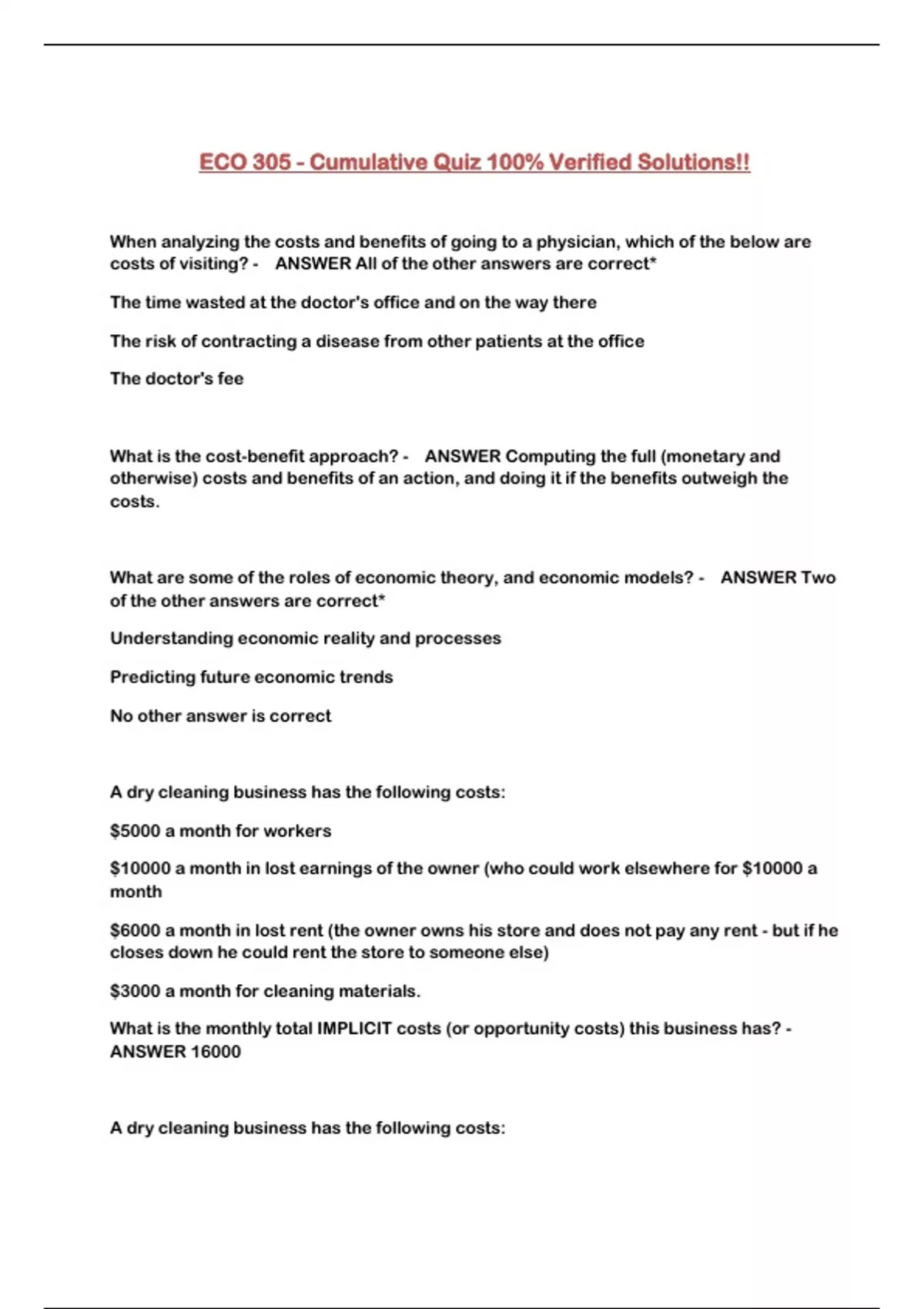ECO 305 - Cumulative Quiz 100% Verified Solutions!!