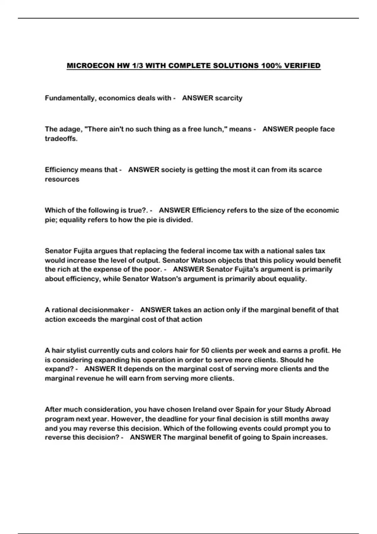 MICROECON HW 1/3 WITH COMPLETE SOLUTIONS 100% VERIFIED