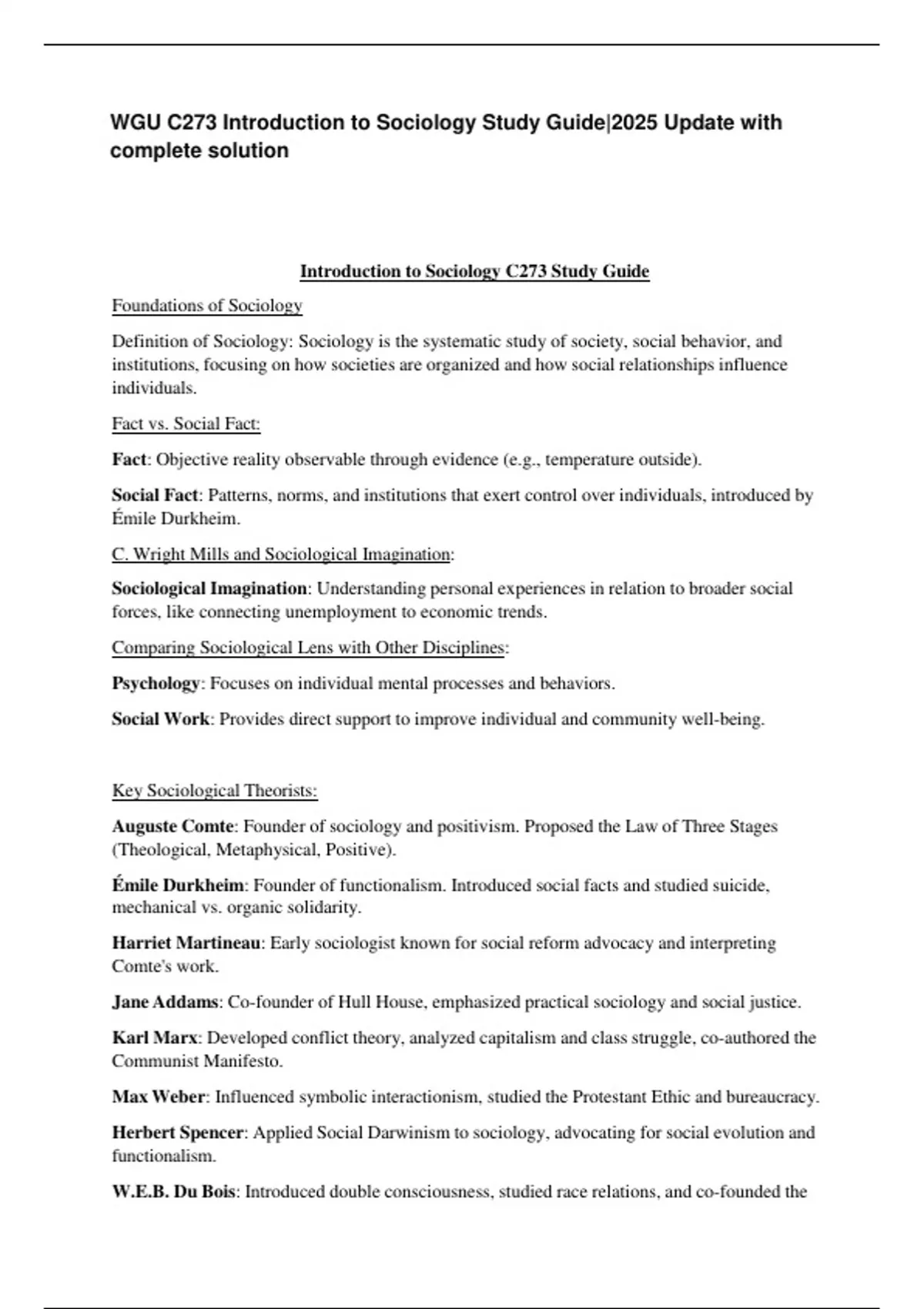 WGU C273 Introduction to Sociology Study Guide|2025 Update with