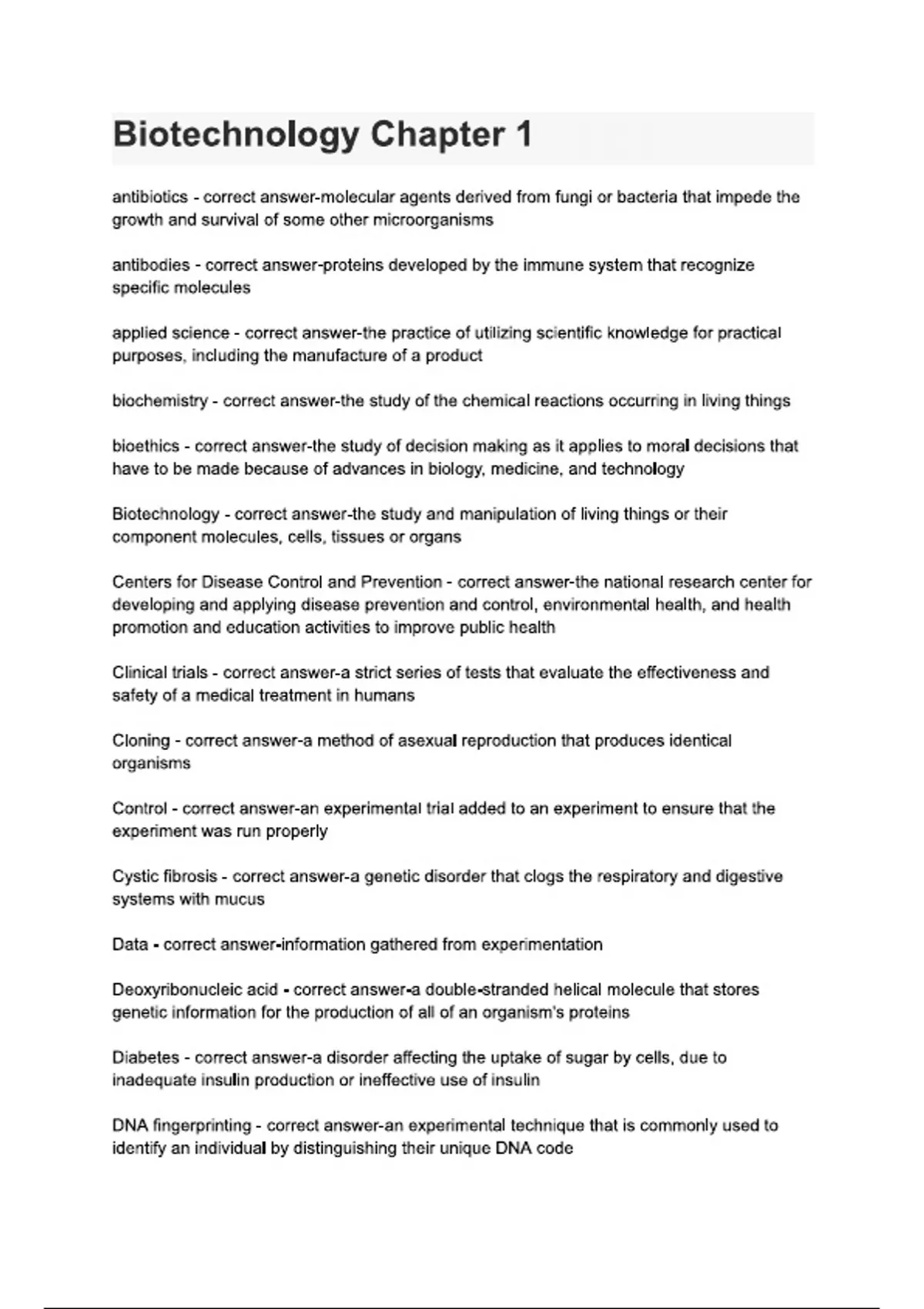 Biotechnology Chapter 1 Questions With 100% Correct Answers, (2024 / 2025), Rated A+.