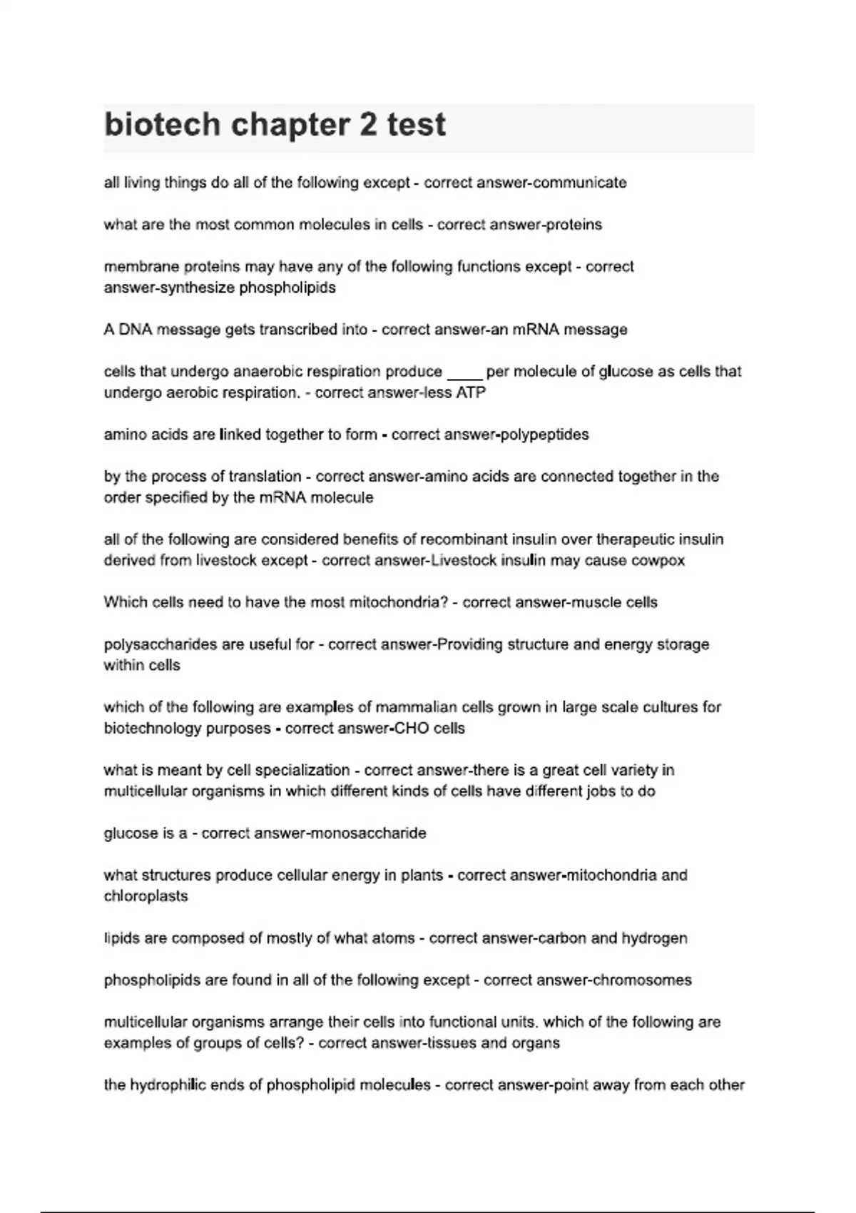 biotech chapter 2 test Question with Answer for Biotechnology - Download Free A+ Grade PDF