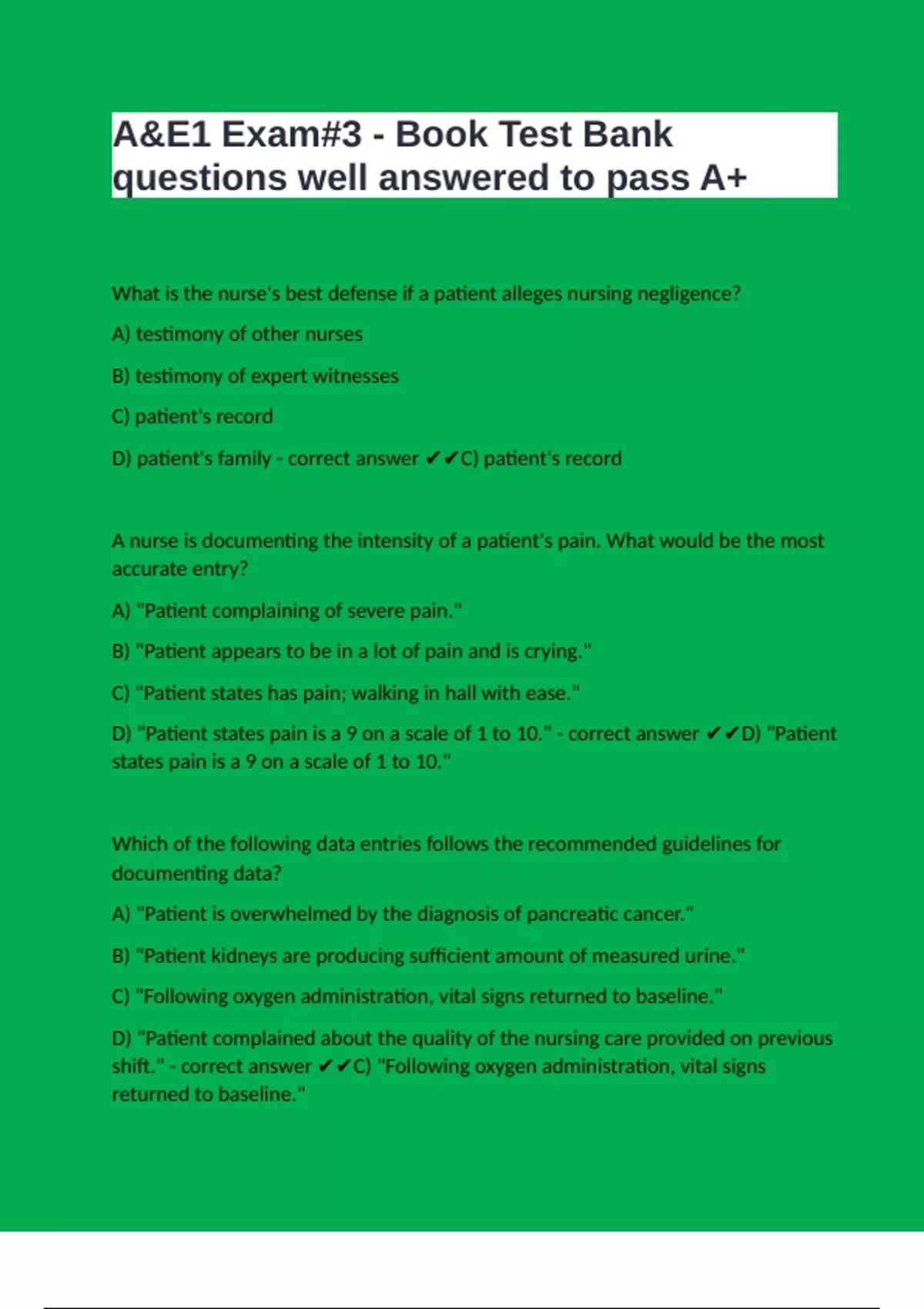 A&E1 Exam#3 - Book Test Bank questions well answered to pass A+
