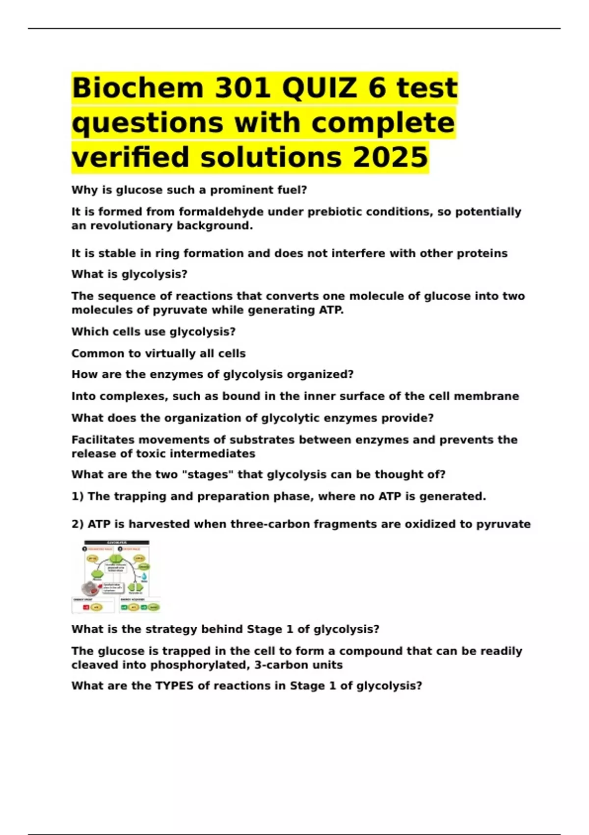 Biochem 301 QUIZ 6 test questions with complete verified solutions 2025.