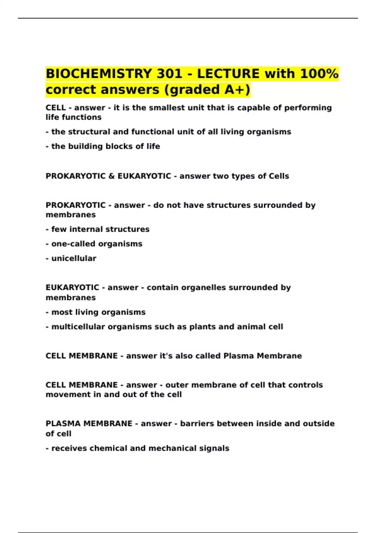BIOCHEMISTRY 301 - LECTURE with 100%