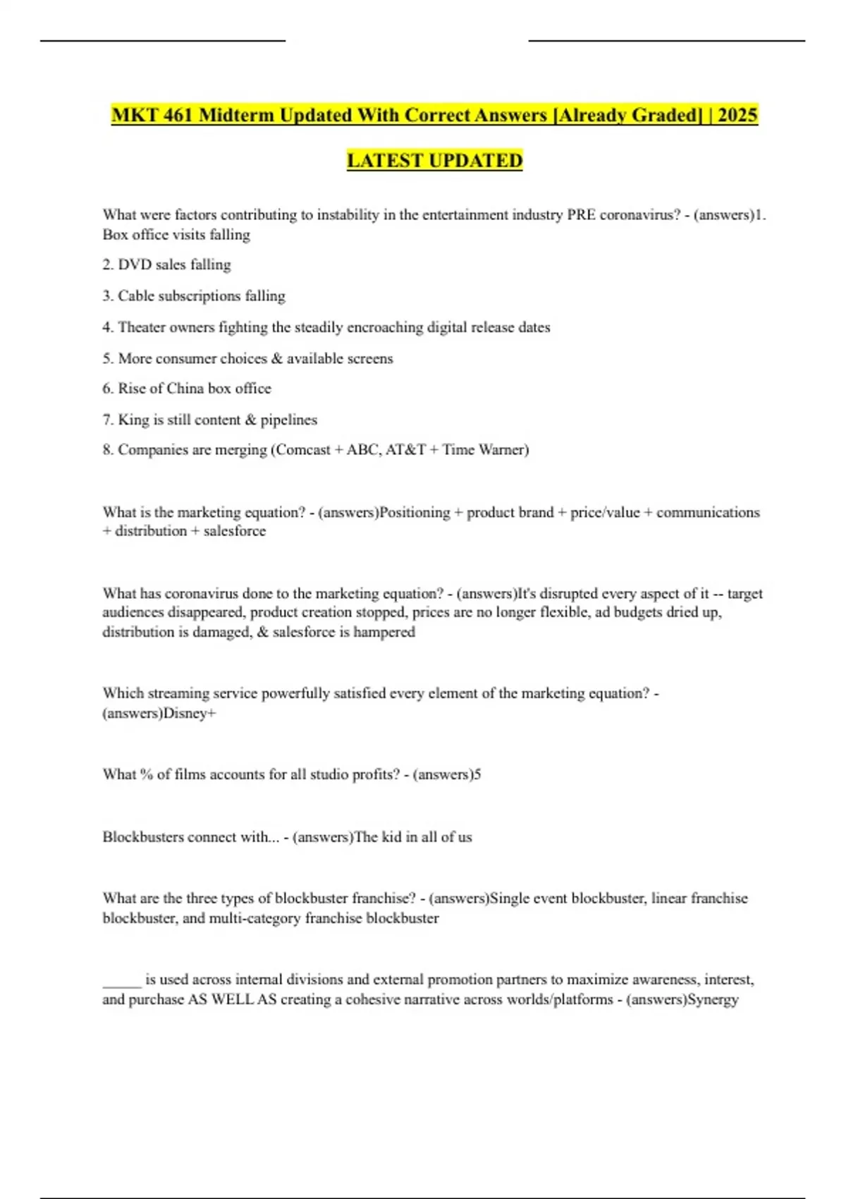 MKT 461 Midterm Updated With Correct Answers [Already Graded] | 2025