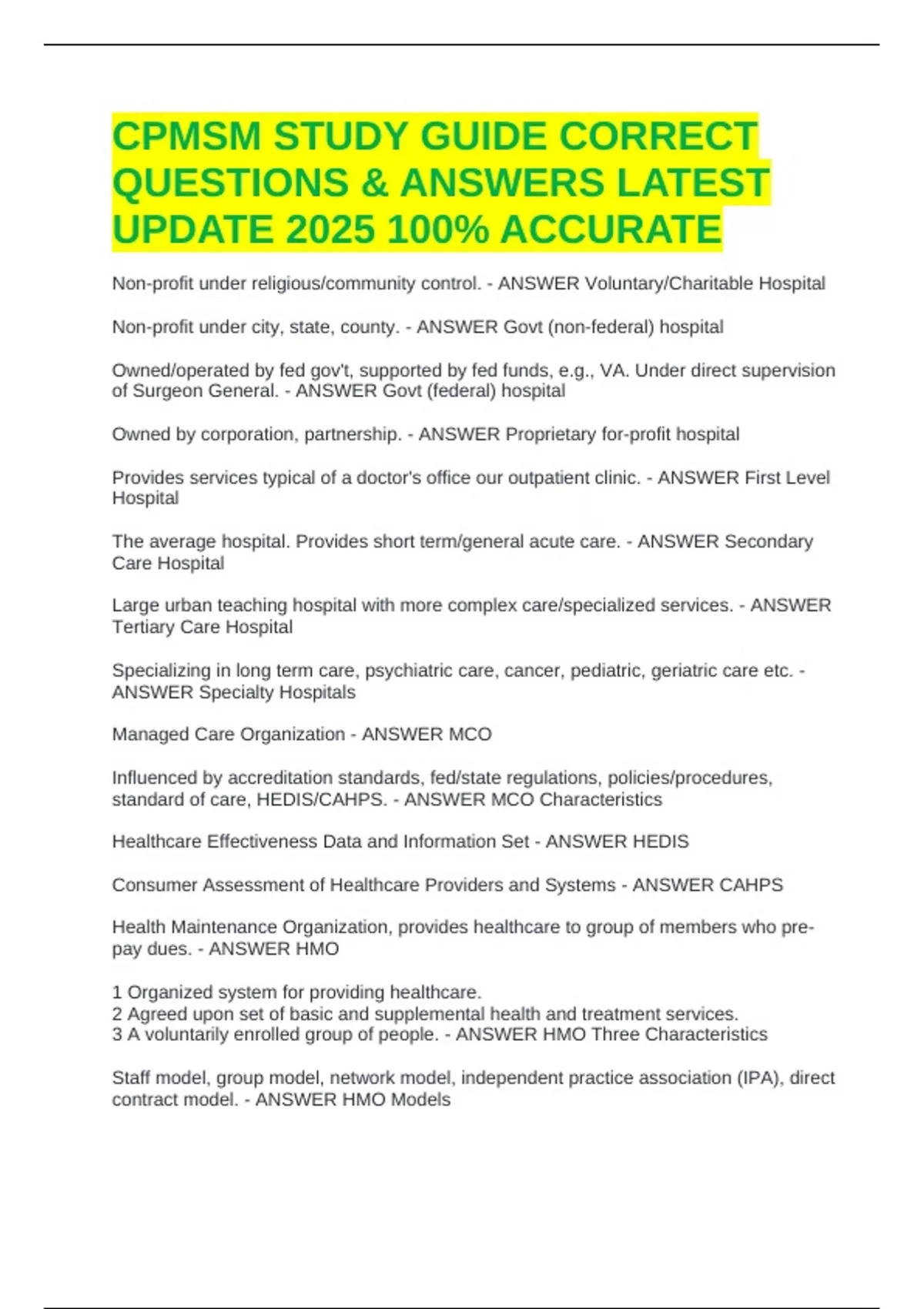 CPMSM STUDY GUIDE CORRECT QUESTIONS & ANSWERS LATEST UPDATE 2025 100% ACCURATE