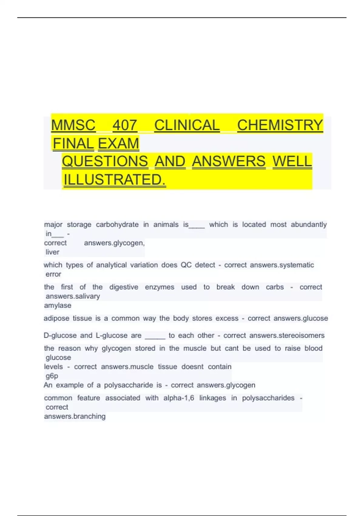 MMSC 407 CLINICAL CHEMISTRY