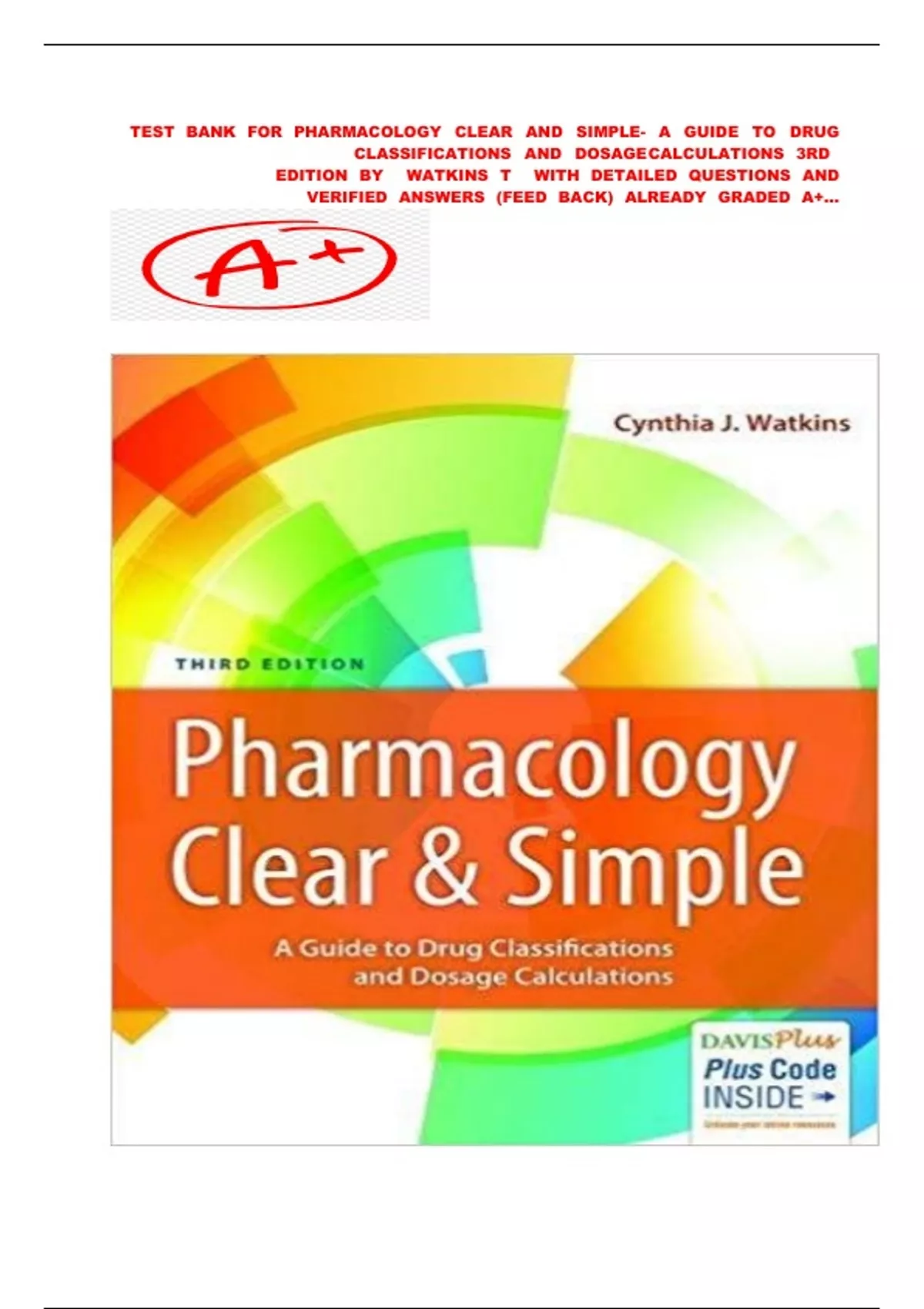 DosageCalculations 3rd Edition Watkins Test Bank