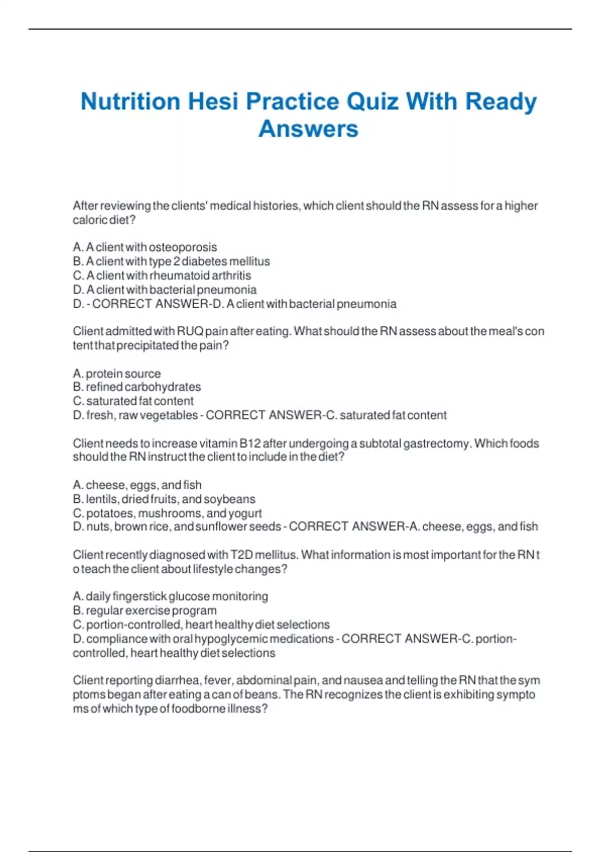 Nutrition Hesi Practice Quiz With Ready Answers Nutrition Hesi Practice Quiz With Ready Answers Nutrition Hesi Practice Quiz With Ready Answers