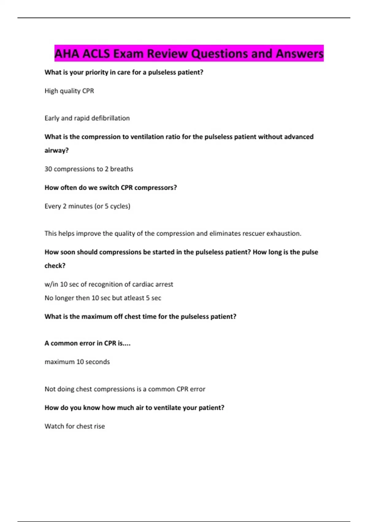 How soon should compressions be started in the pulseless patient? How long is the pulse