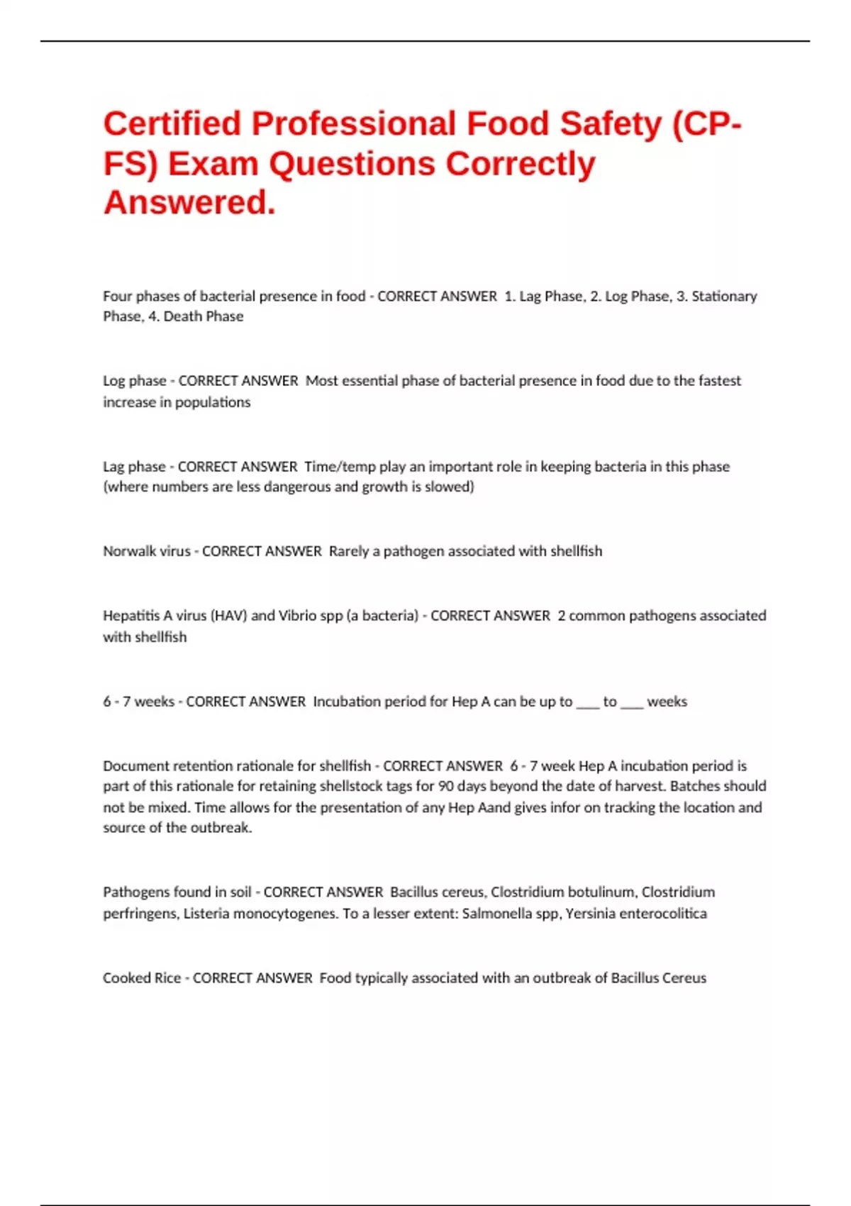Document retention rationale for shellfish - CORRECT ANSWER 6 - 7 week Hep A incubation period is