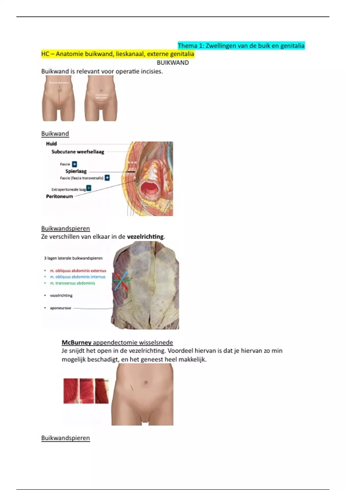 Buikwand is relevant voor operatie incisies.