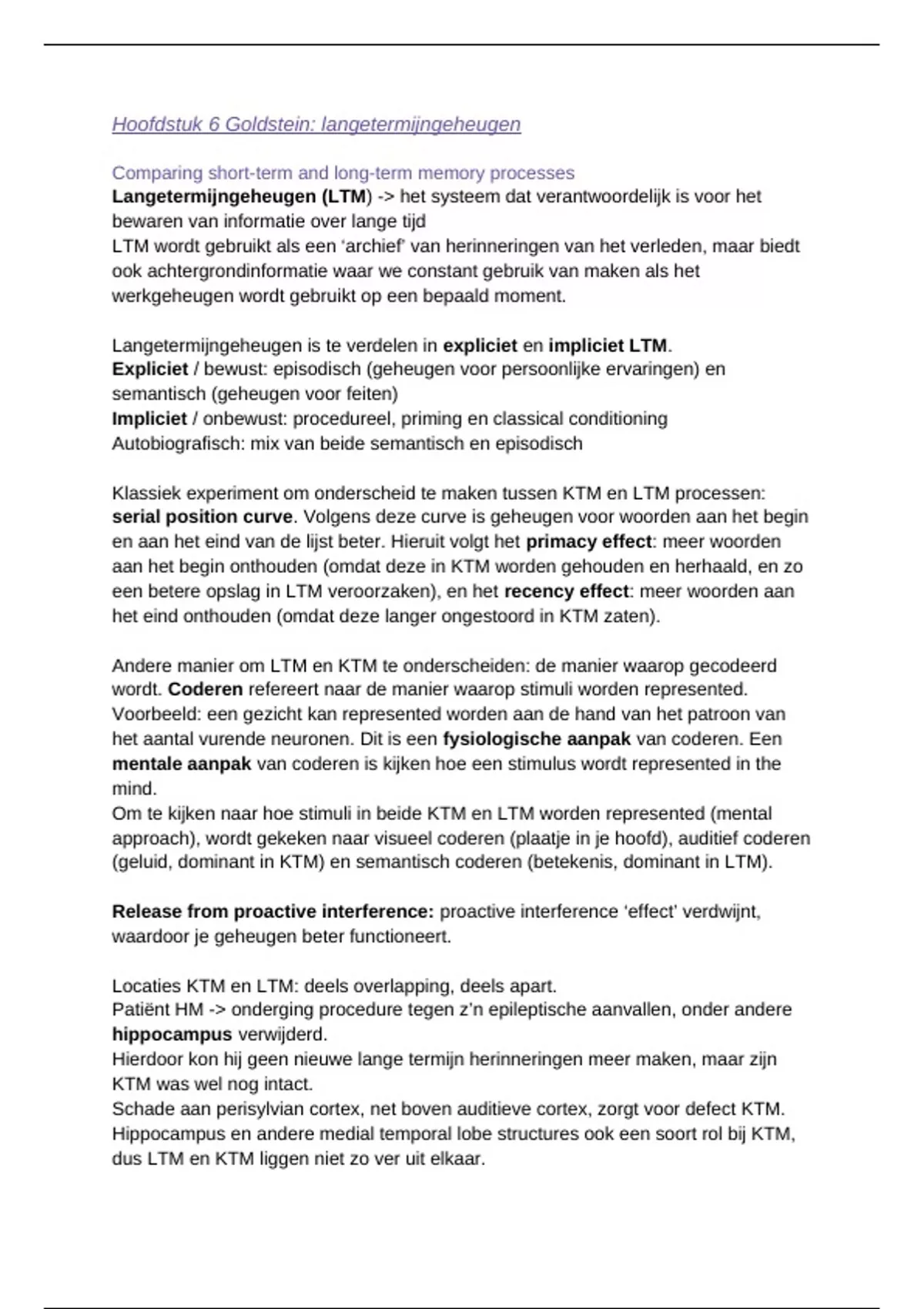 , Hoofdstuk 7 Goldstein: langetermijngeheugen: encoding, retrieval and