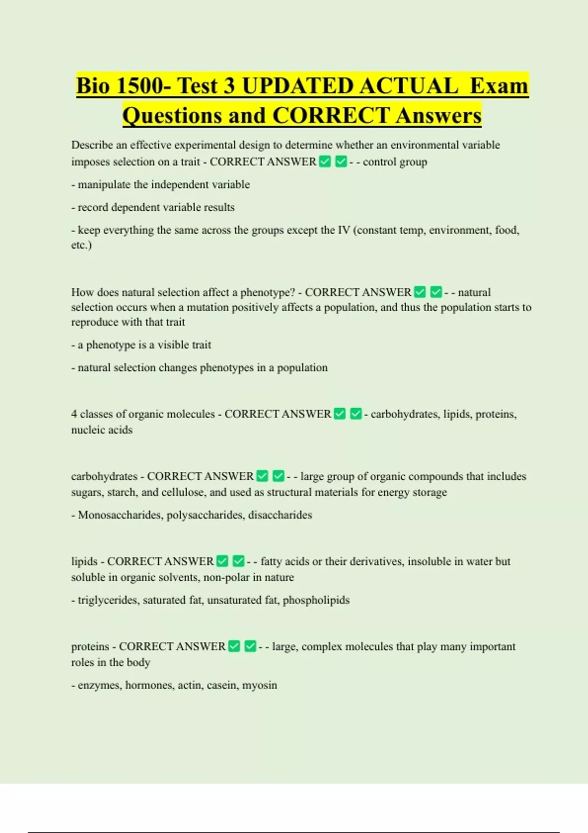 Bio 1500- Test 3 UPDATED ACTUAL Exam