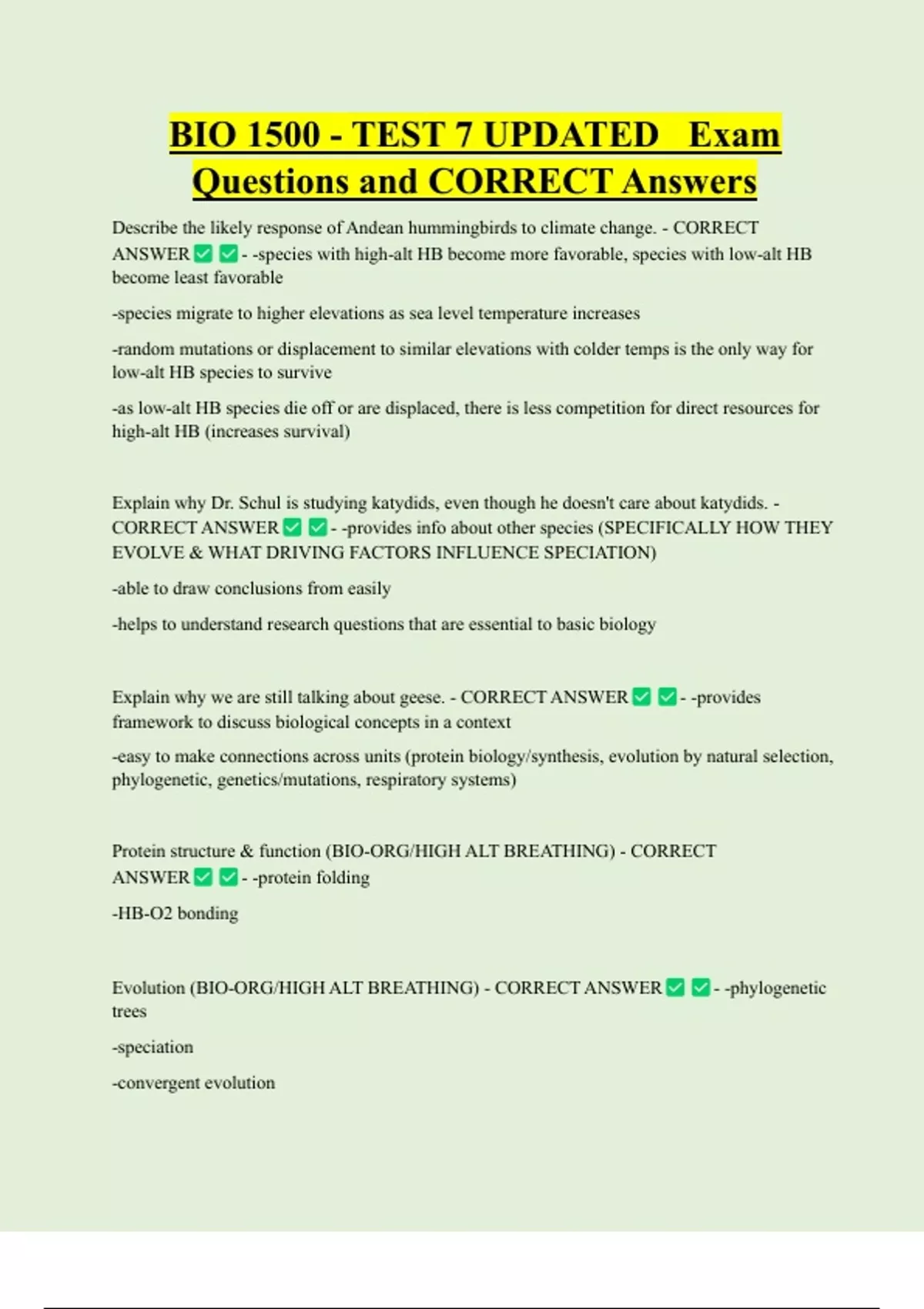 , Genetics (BIO-ORG/HIGH ALT BREATHING) - CORRECT ANSWER --