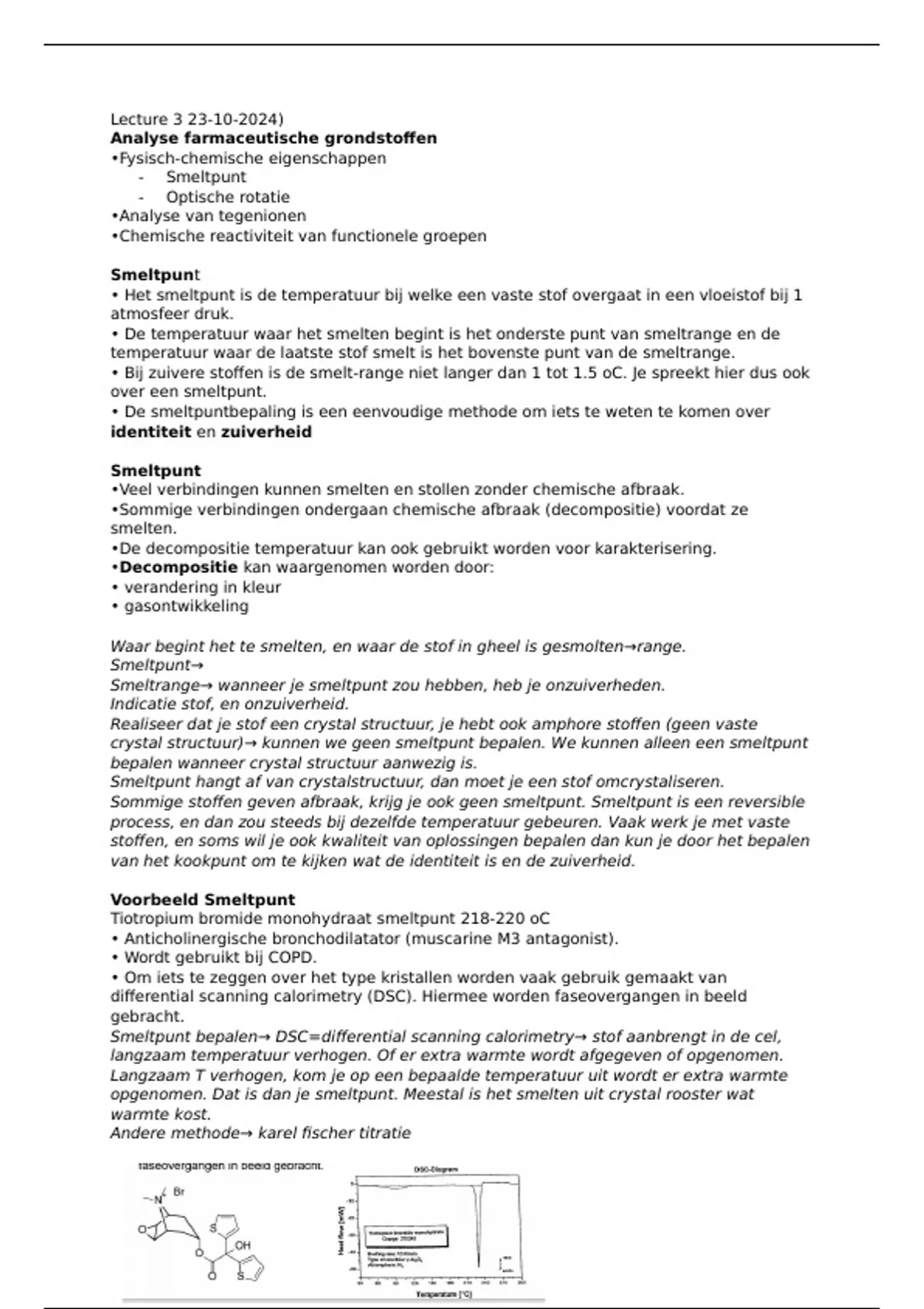 Smeltpunt bepalen→ DSC=differential scanning calorimetry→ stof aanbrengt in de cel,