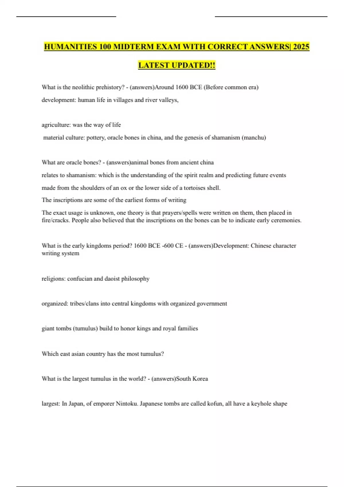 HUMANITIES 100 MIDTERM EXAM WITH CORRECT ANSWERS| 2025