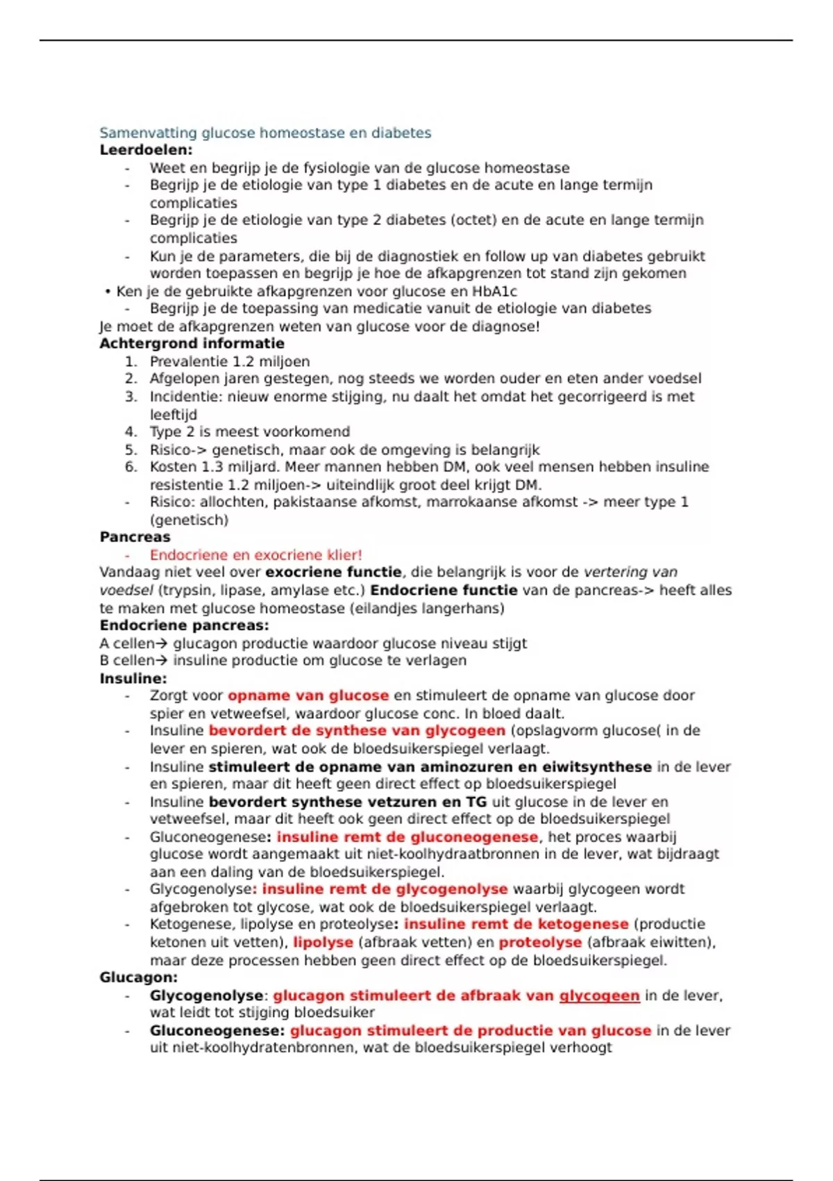 - Weet en begrijp je de fysiologie van de glucose homeostase
