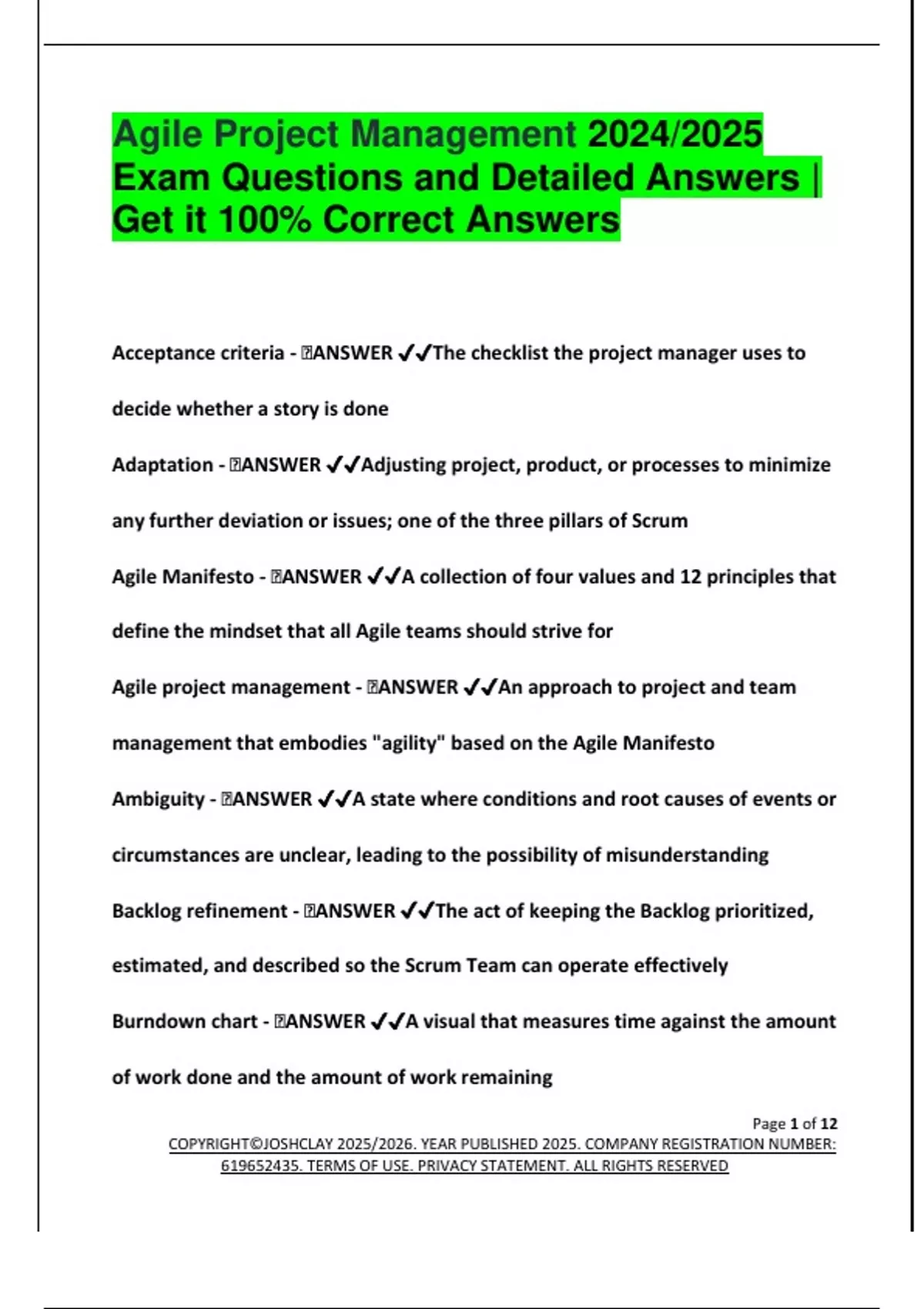 Agile Manifesto - 🧠ANSWER ✔✔A collection of four values and 12 principles that