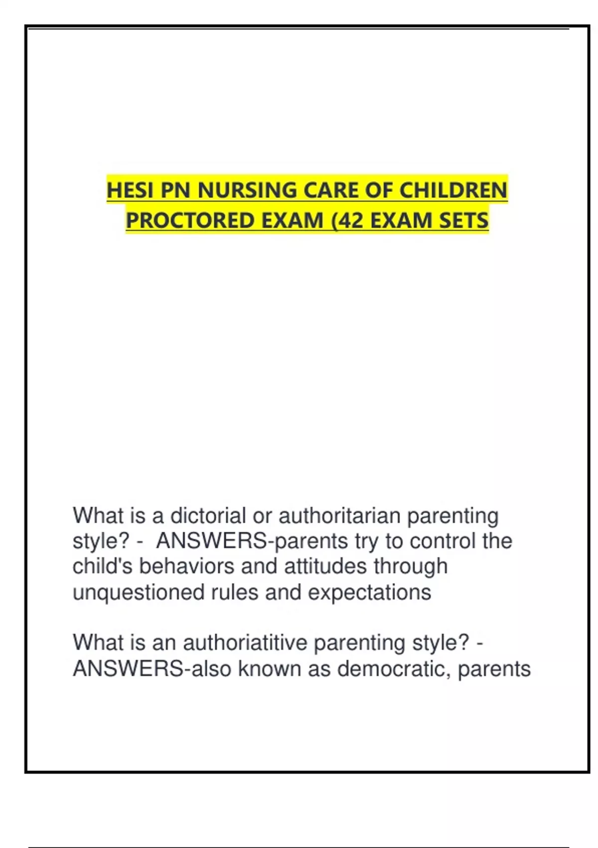 HESI PN NURSING CARE OF CHILDREN PROCTORED EXAM (42 EXAM SETS